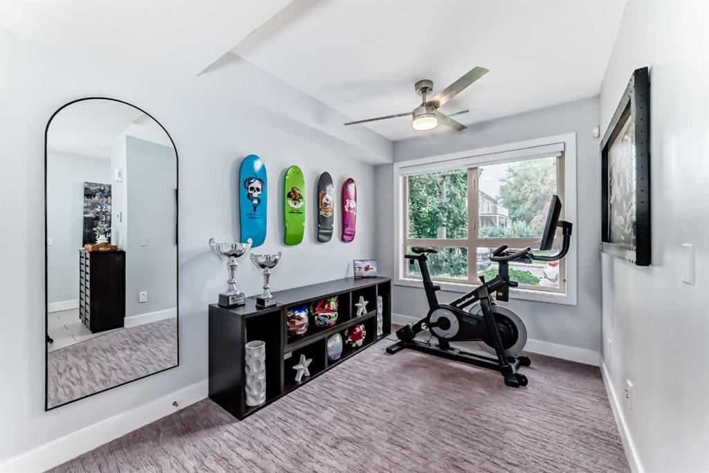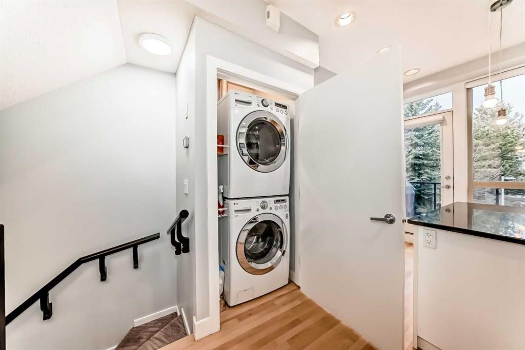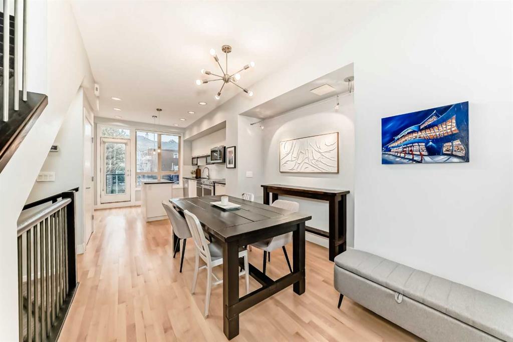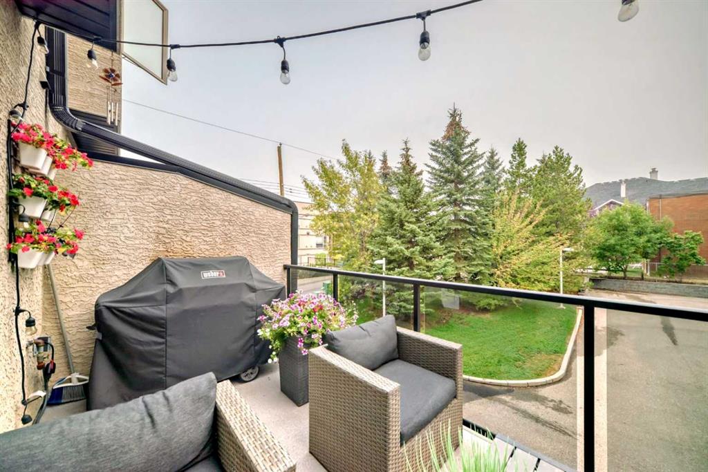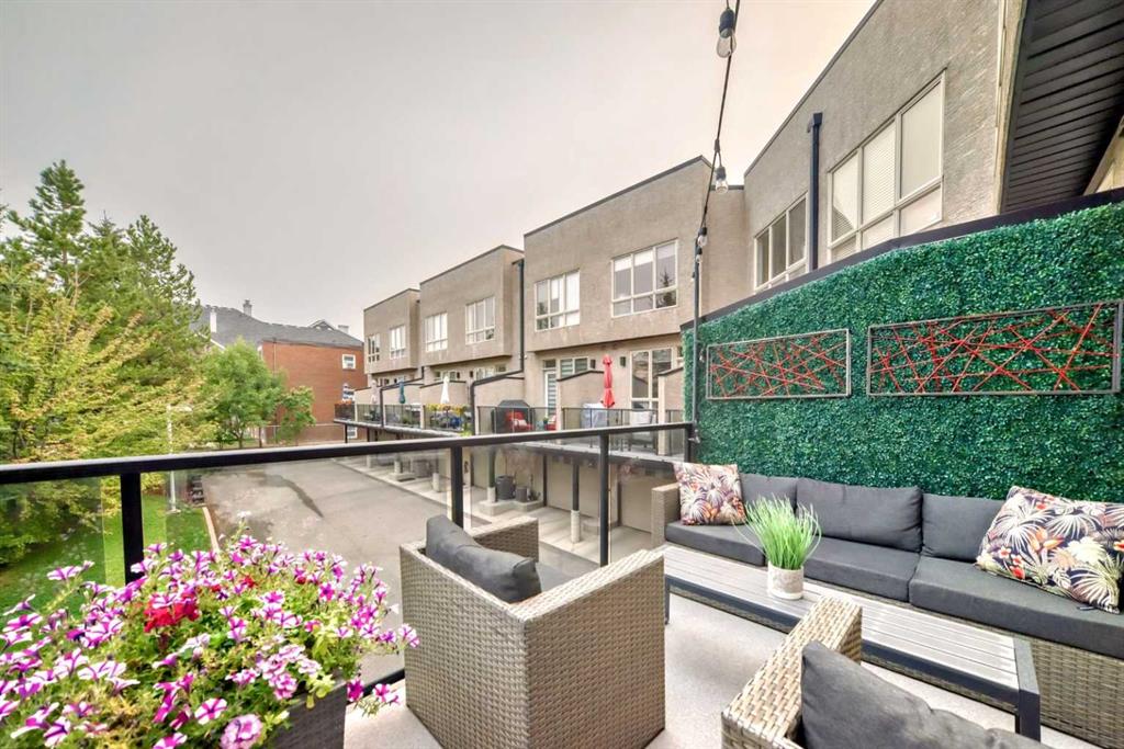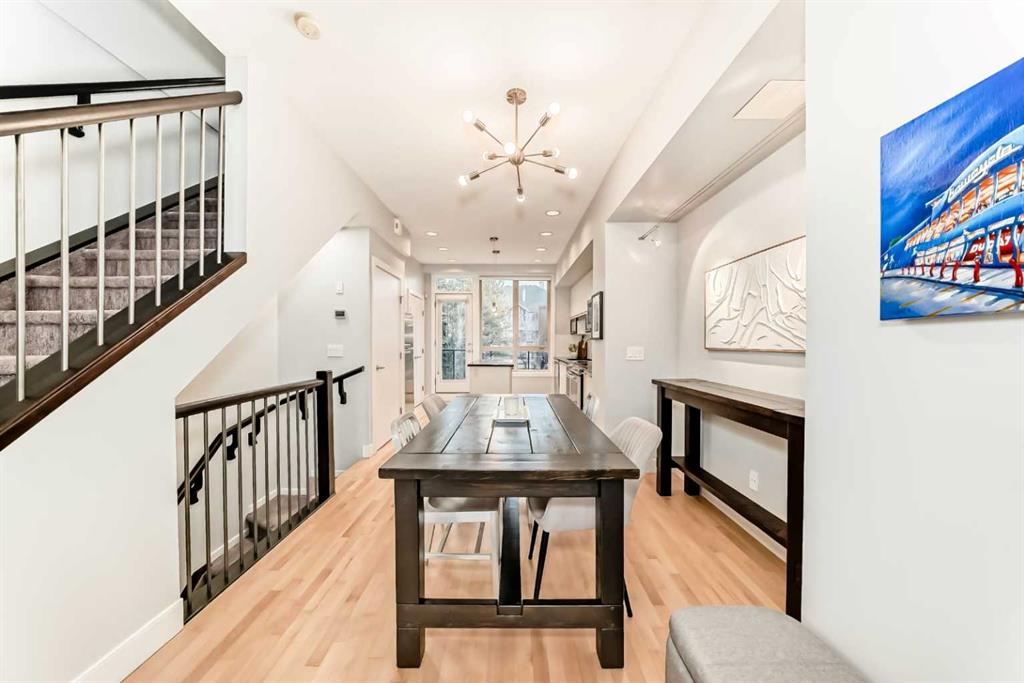 Click brochure link for more details** The Galleries of Altadore – One of the most sought-after townhome communities in the heart of Altadore/Marda Loop. Rarely do homes in this exclusive development come available on the resale market. This beautifully renovated, bright, and spacious 3-level townhome offers 2 bedrooms, 2 bathrooms, and a den. With both north and south exposure plus oversized windows throughout, the home is flooded with natural light. The main living level features dramatic 10-foot ceilings that enhance the open, airy feel. The show-stopping kitchen is a true highlight, featuring a granite island, premium stainless steel appliances, and sleek full-height modern cabinetry. It opens seamlessly to a private patio complete with a natural gas BBQ hook-up. The living room boasts a custom-built millwork entertainment unit and a cozy natural gas fireplace. Newly refinished walnut hardwood floors (2025) run throughout the main living areas, adding warmth and elegance. Off the main level, the custom-finished attached garage leads directly into a versatile den featuring porcelain tile flooring and comfortable in-floor heating. The Galleries is well-managed with a healthy reserve fund and a proactive condo board committed to keeping monthly fees reasonable. Ideally located, you’re just minutes from downtown Calgary, vibrant Marda Loop shopping and dining, River Park dog park, Sandy Beach, extensive pathways, and all the amenities this coveted community has to offer.