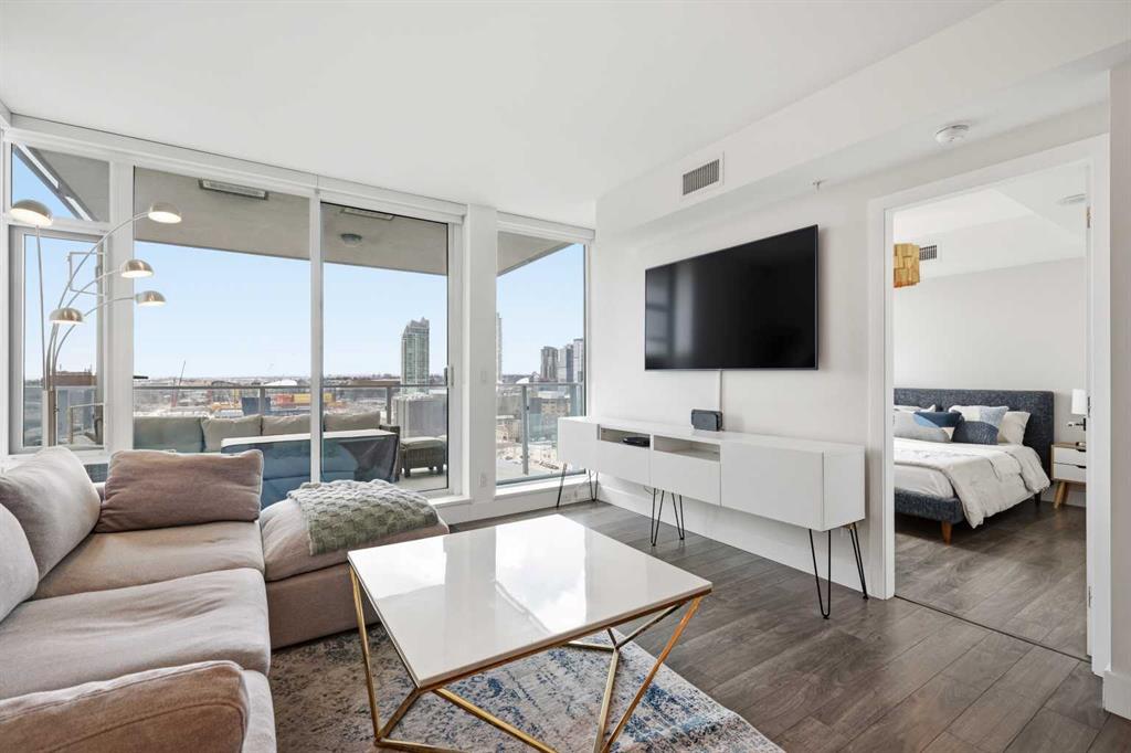 Stand on your 16th floor balcony and look out over the Stampede grounds with the Calgary Tower front and centre. This is one of those units where the view never gets old. South-facing, so you get great afternoon sun all year long. And the same view follows you into the bedroom, with floor to ceiling windows that bring it right in. Blackout curtains are there for when you actually want to sleep.