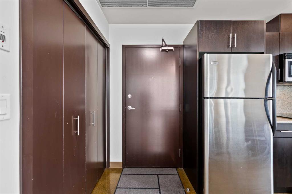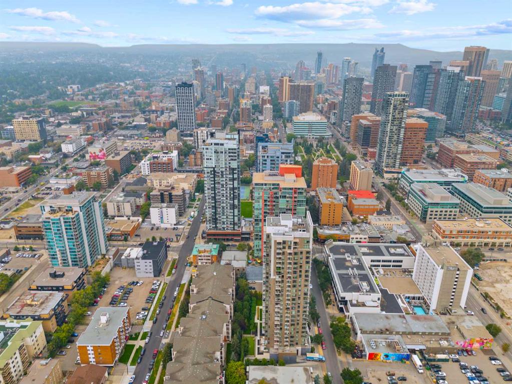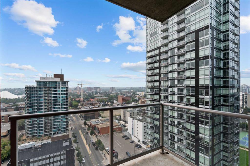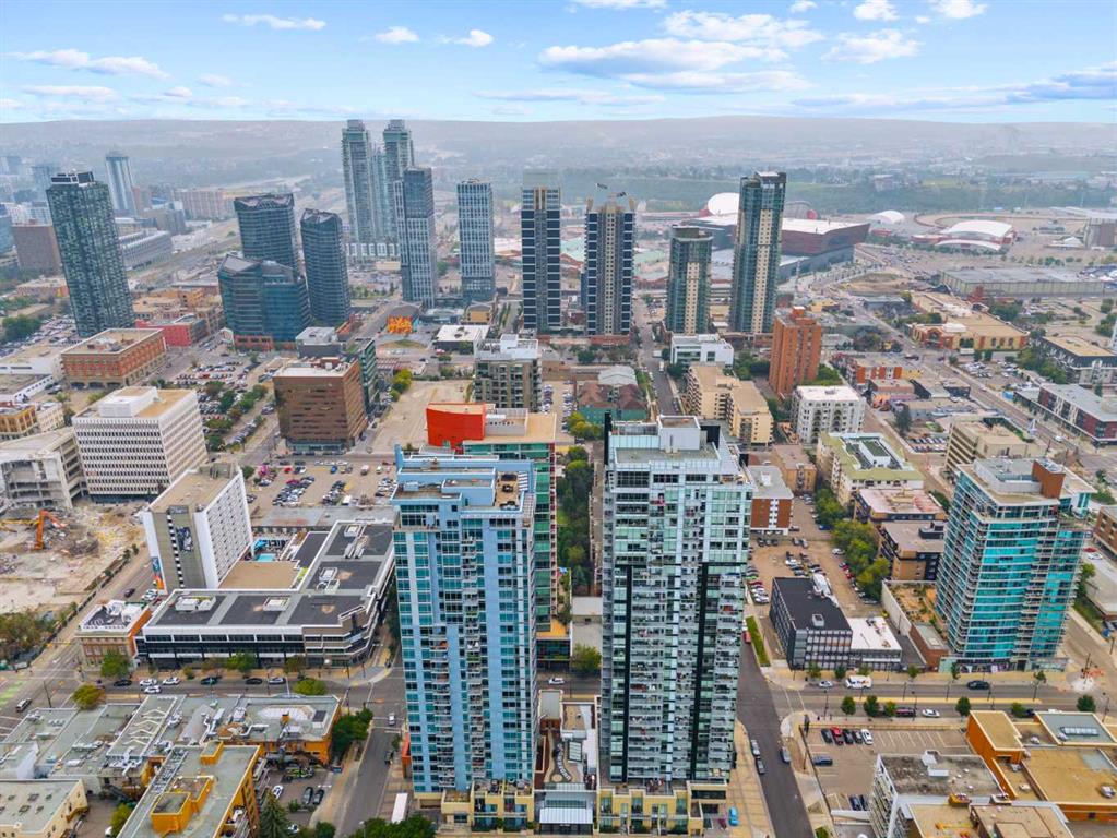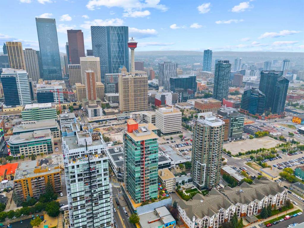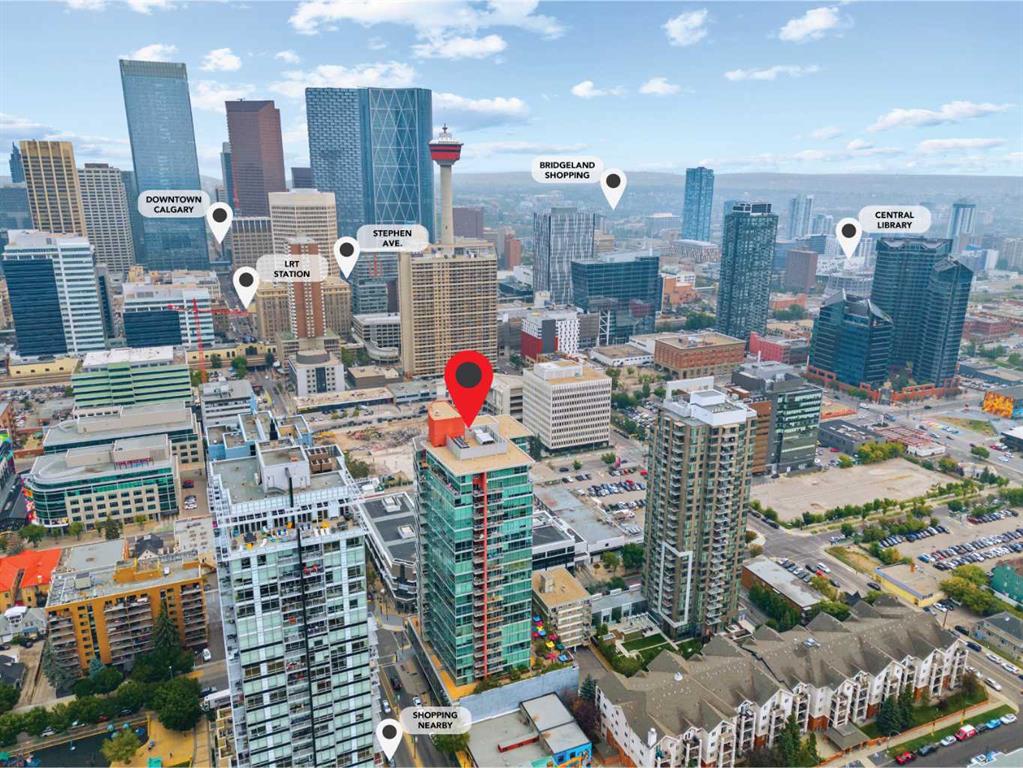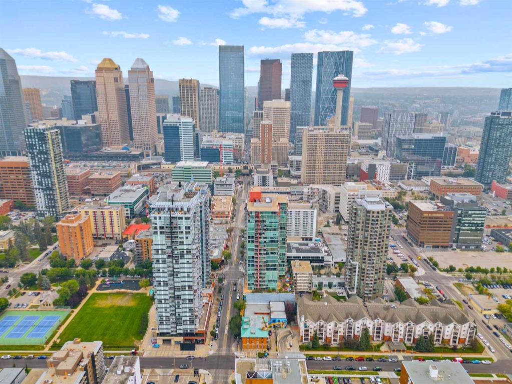 Perched high on the 16th floor of Colours in Calgary’s vibrant Beltline, this stylish end unit offers an urban lifestyle wrapped in unforgettable views. Floor to ceiling windows flood the open layout with natural light while framing iconic cityscapes including the Calgary Tower and Stampede grounds. The modern kitchen blends design with function, featuring stone counters, stainless steel appliances, a peninsula island with seating and direct access to the balcony where summer barbeques can be enjoyed against a skyline backdrop. The dining area is perfectly positioned to take in the twinkling lights of downtown while the adjacent living room provides a relaxing retreat with ever-changing vistas. A private bedroom pairs with a 4-piece bathroom finished with stone counters and in-suite laundry adds everyday convenience. Polished concrete floors, central air conditioning and secure heated underground parking enhance comfort and style. From your balcony, watch fireworks light up the sky and soak in Calgary’s energy from a personal vantage point. Outside the building’s door, discover one of the city’s most dynamic neighbourhoods with premier dining, pubs, coffee shops and shopping steps away, along with Central Memorial Park, Haultain Park tennis courts, the Stampede grounds and the nightlife of 17th Avenue. With pet-friendly and short-term rental friendly policies upon board approval, Colours is a community that embraces flexibility. This residence balances design, comfort and location, offering a truly connected downtown lifestyle!