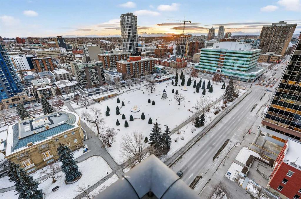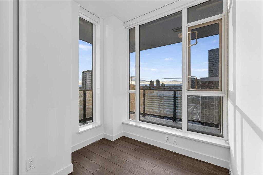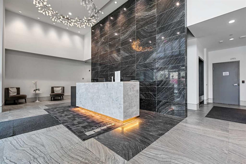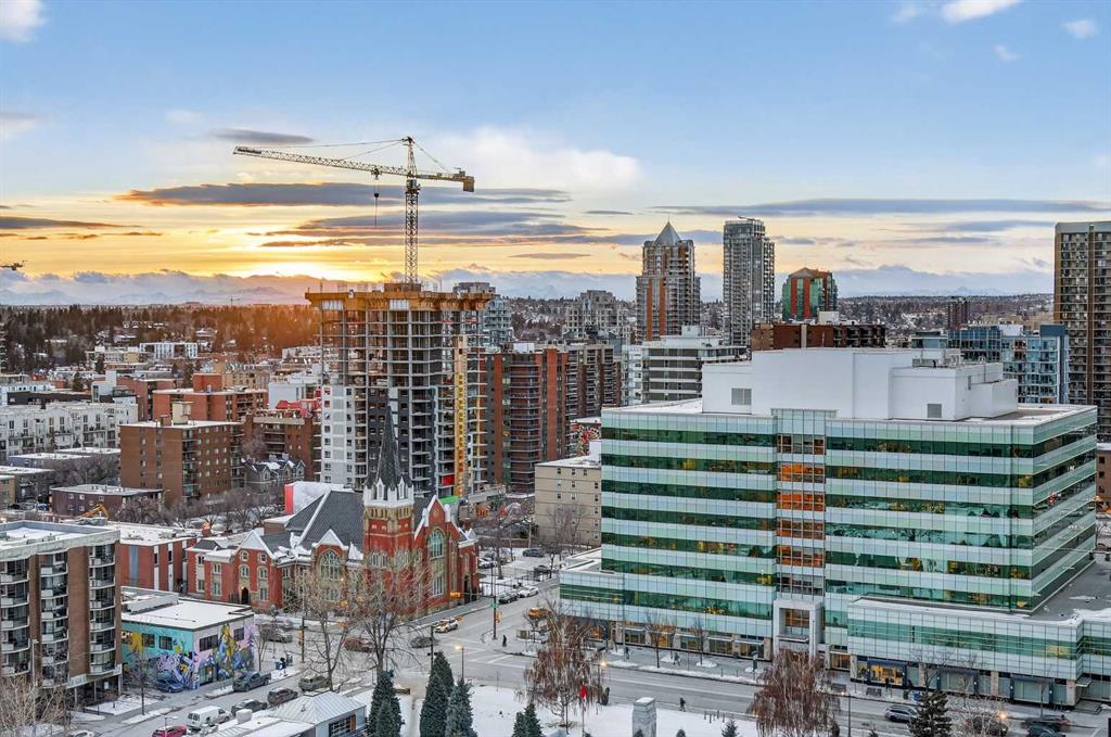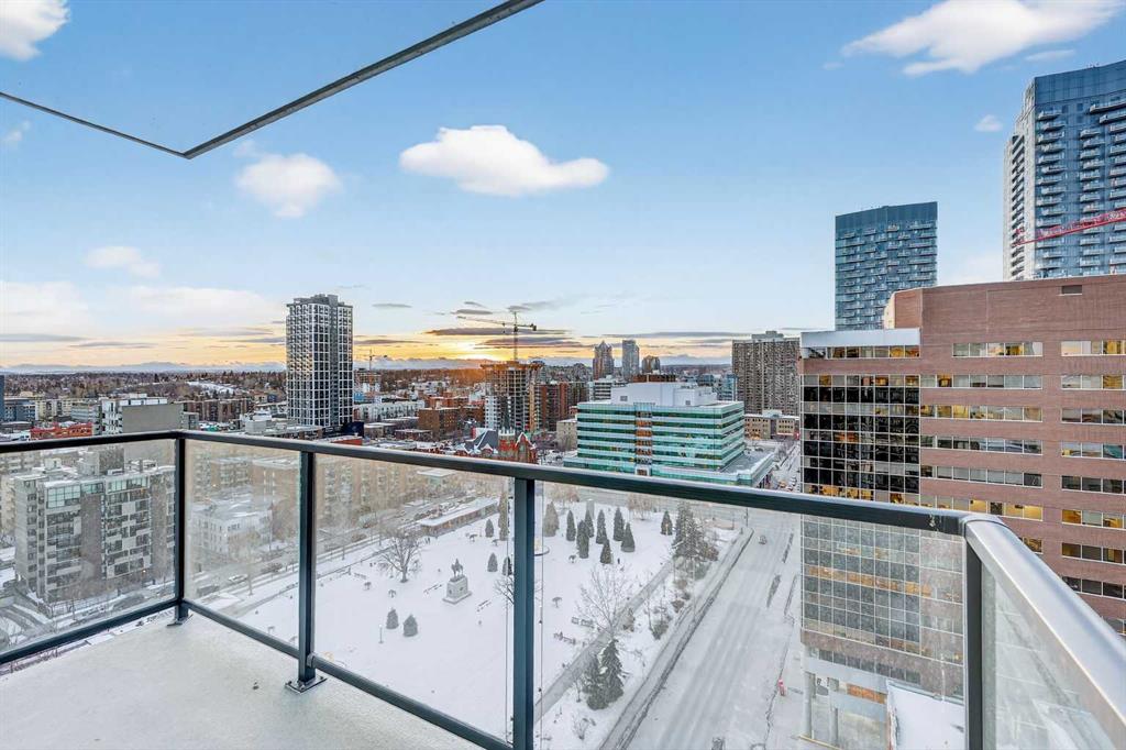Perched high on the 16th floor, this exceptional corner end unit offers panoramic, unobstructed views of the city skyline, Memorial Park, and the Rocky Mountains. Expansive floor-to-ceiling windows and 9-foot ceilings flood the home with natural light, creating an airy, refined living space. Designed with modern sophistication, the open-concept layout features granite countertops, a large central island, integrated high-end appliances, and air conditioning, seamlessly blending style and function for everyday living or entertaining. The living and kitchen areas flow effortlessly, making the space equally suited for relaxing, dining, or working from home. The primary suite is a true retreat, showcasing tranquil park views and a walk-through closet leading to a luxurious 5-piece ensuite complete with a double marble vanity, glass-enclosed shower, and a deep soaker tub. A sun-filled home office adds versatility, while the second bedroom captures stunning west-facing mountain views. Step outside to the private balcony—perfect for summer barbecues or enjoying Calgary’s dynamic urban landscape. Additional conveniences include one titled, heated, secure underground parking stall, an assigned storage locker, and access to a car wash bay within the parkade. Park Point delivers an elevated, pet-friendly lifestyle with premium amenities including a beautifully appointed owner’s lounge with kitchen and fireplace, guest suite, 24-hour concierge, on-site security, secure underground parking, and dedicated bike storage with wash station. Pet owners will love the on-site dog wash, making daily life with four-legged companions effortless. Outdoor amenities include a Zen garden and terrace, BBQ area, and a cozy fire pit. Wellness-focused residents enjoy a fully equipped fitness centre, yoga studio, sauna, and steam room. Ideally located just steps from the Elbow River pathway system, tennis and pickleball courts, and the shops and restaurants of 17th Avenue. Downtown conveniences including the Calgary Public Library and the +15 skywalk system are only minutes away, offering exceptional connectivity and urban convenience. Please ask your real estate professional about the exciting news in regards to the neigbouring Sheldon Chumir health amenity (they can refer to the prviate realtor notes on this listing).