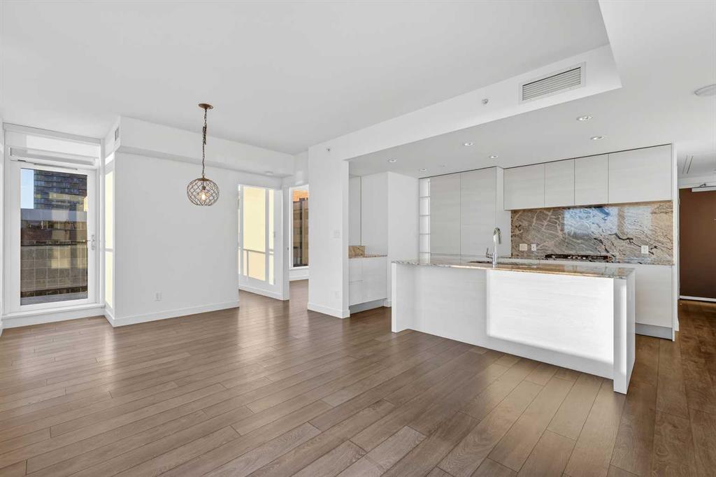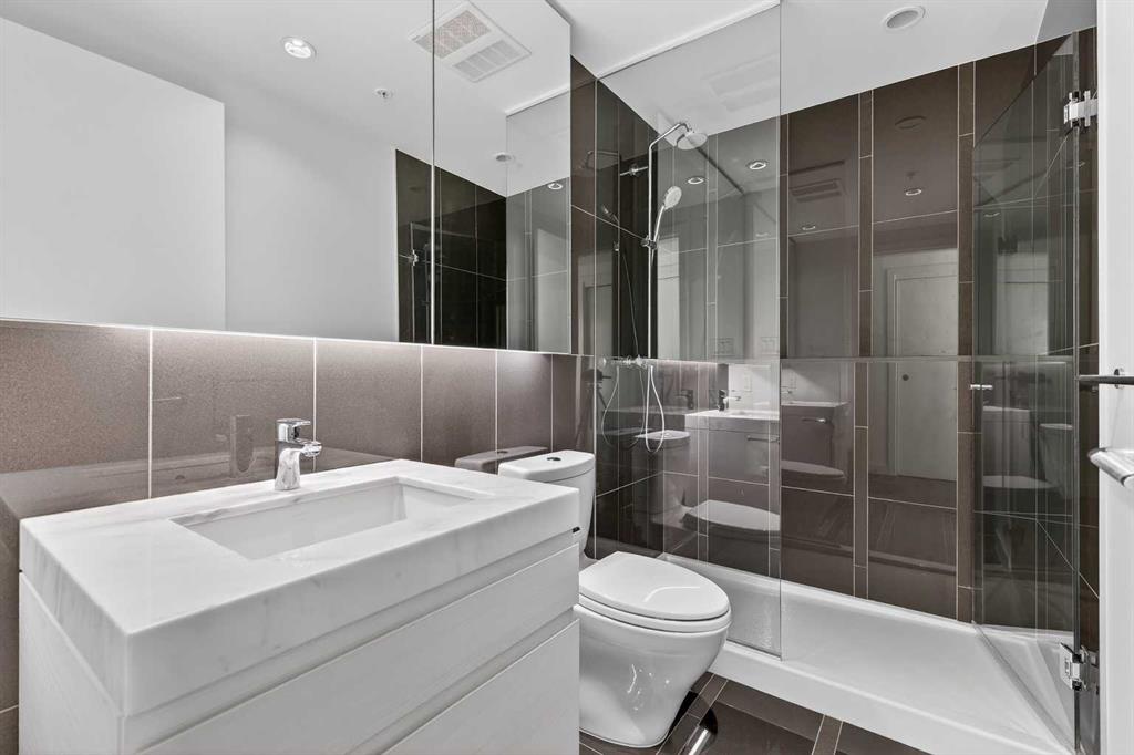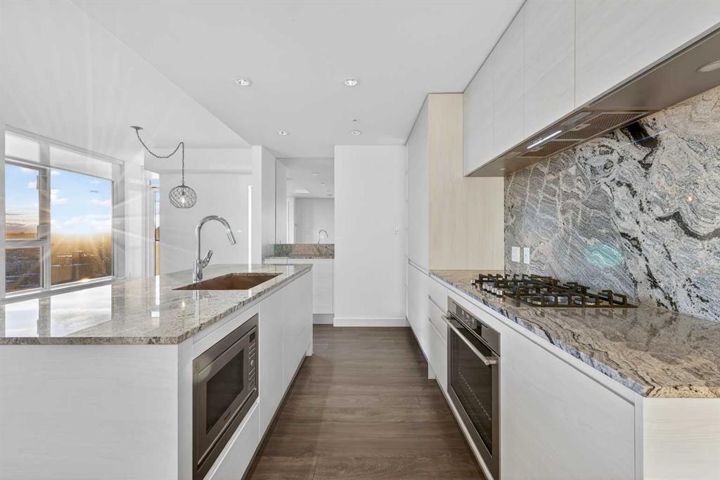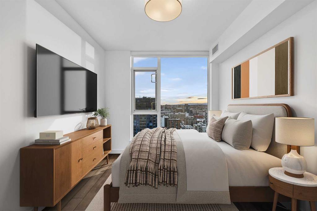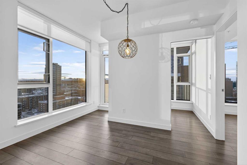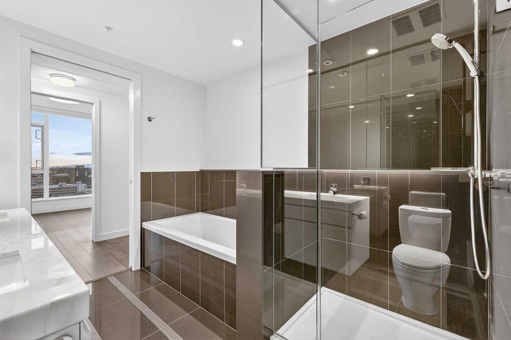 Perched high on the 16th floor, this exceptional corner end unit offers panoramic, unobstructed views of the city skyline, Memorial Park, and the Rocky Mountains. Expansive floor-to-ceiling windows and 9-foot ceilings flood the home with natural light, creating an airy, refined living space. Designed with modern sophistication, the open-concept layout features granite countertops, a large central island, integrated high-end appliances, and air conditioning, seamlessly blending style and function for everyday living or entertaining. The living and kitchen areas flow effortlessly, making the space equally suited for relaxing, dining, or working from home. The primary suite is a true retreat, showcasing tranquil park views and a walk-through closet leading to a luxurious 5-piece ensuite complete with a double marble vanity, glass-enclosed shower, and a deep soaker tub. A sun-filled home office adds versatility, while the second bedroom captures stunning west-facing mountain views. Step outside to the private balcony—perfect for summer barbecues or enjoying Calgary’s dynamic urban landscape. Additional conveniences include one titled, heated, secure underground parking stall, an assigned storage locker, and access to a car wash bay within the parkade. Park Point delivers an elevated, pet-friendly lifestyle with premium amenities including a beautifully appointed owner’s lounge with kitchen and fireplace, guest suite, 24-hour concierge, on-site security, secure underground parking, and dedicated bike storage with wash station. Pet owners will love the on-site dog wash, making daily life with four-legged companions effortless. Outdoor amenities include a Zen garden and terrace, BBQ area, and a cozy fire pit. Wellness-focused residents enjoy a fully equipped fitness centre, yoga studio, sauna, and steam room. Ideally located just steps from the Elbow River pathway system, tennis and pickleball courts, and the shops and restaurants of 17th Avenue. Downtown conveniences including the Calgary Public Library and the +15 skywalk system are only minutes away, offering exceptional connectivity and urban convenience. Please ask your real estate professional about the exciting news in regards to the neigbouring Sheldon Chumir health amenity (they can refer to the prviate realtor notes on this listing).