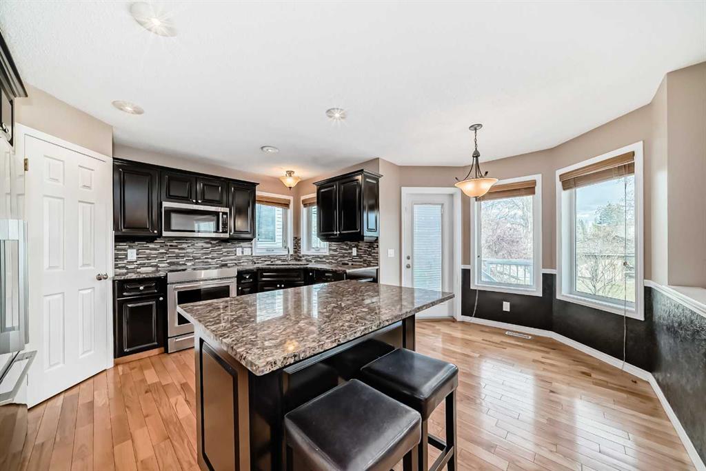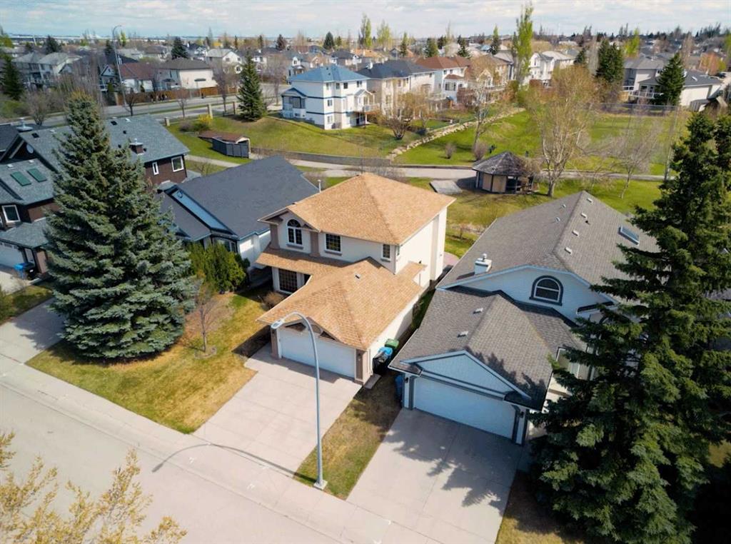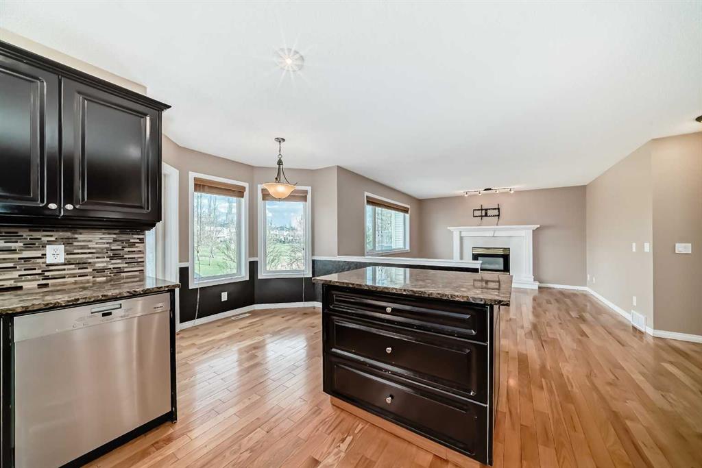 Beautifully upgraded, and backing onto the 10th hole of Eaglequest Golf Course, this Douglasdale home blends elegant design with exceptional location. From the moment you arrive, immaculate landscaping and undeniable curb appeal hint at the pride of ownership throughout. Inside, a grand entryway with soaring ceilings, fresh paint, and a statement chandelier set the tone for a bright, airy interior. Floor-to-ceiling bay windows fill the living room with natural light, highlighting gleaming hardwood floors that flow into the open-concept dining area. The kitchen features a striking palette, new stainless appliances, a new sink and garburator, and a full pantry. The eat-up island and sunny breakfast nook offer serene golf course views; the perfect spot for your morning coffee. Outside, an expansive deck has glass paneled railings designed to immerse you in the peaceful setting. Back inside, the cozy family room is ideal for relaxing by the gas fireplace, while a main floor office, powder room, and laundry area with a brand-new washer and dryer add both function and flexibility. The oversized double-attached garage is thoughtfully equipped with built-in storage and a new smart door opener. Upstairs, the primary retreat is stunning with vaulted ceilings, arched windows, a spacious custom walk-in closet, and a spa-inspired ensuite with a jetted tub and separate shower. Two more generous bedrooms and a large main bath complete the upper level. The finished basement is a standout, offering one of the brightest lower levels you’ll find. A second gas fireplace anchors the expansive rec room, perfect for movie nights, a home gym, or games area. You’ll also find a second office with built-ins and bay windows, a half-bath, and loads of storage space in the utility room. Additional features include central air conditioning, a smart thermostat, and an irrigation system. Outside, the deck steps down to a stamped concrete patio and a lush lawn edged in mature foliage is the perfect setting any time of day. Located in a highly walkable neighborhood close to schools, parks, and sports fields; the Bow River Pathway is also nearby. Fish Creek Park is just a block away, while South Trail Crossing’s shops and dining are minutes from your door. Quick access to Deerfoot and Stoney Trails makes commuting or weekend adventures a breeze. This home truly has it all—style, comfort, and unbeatable surroundings. Book your showing today!