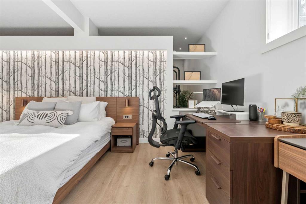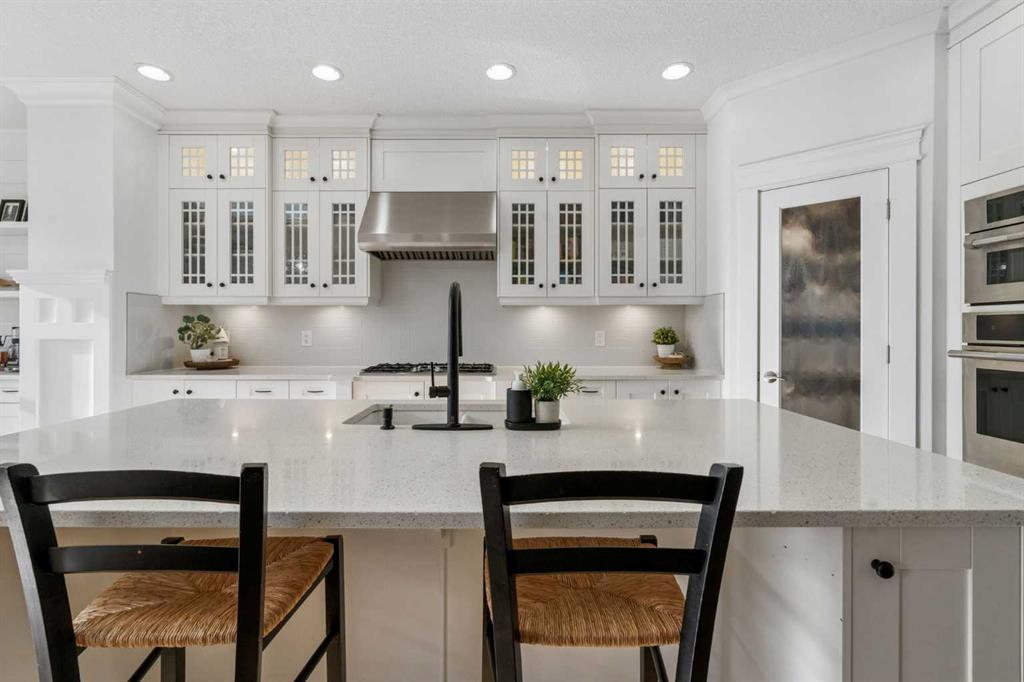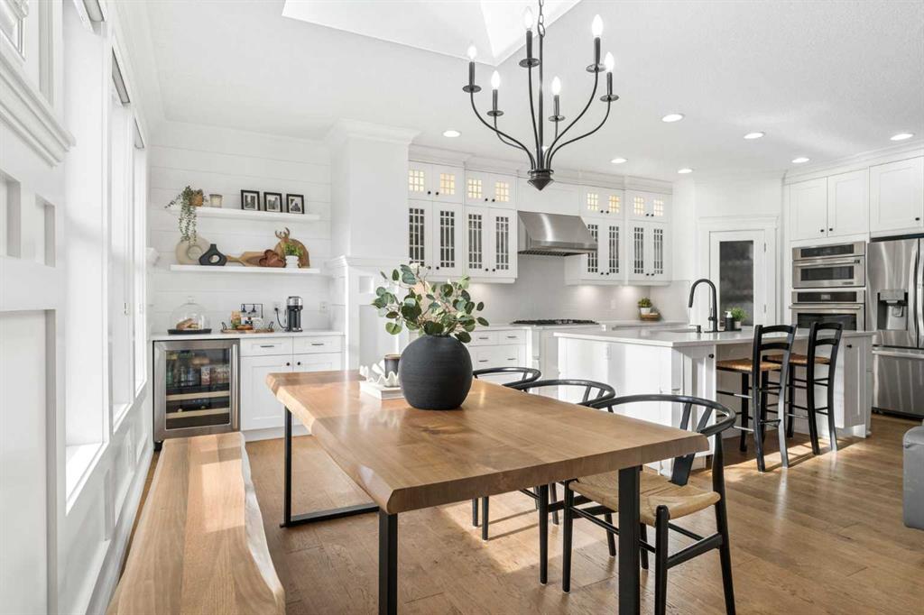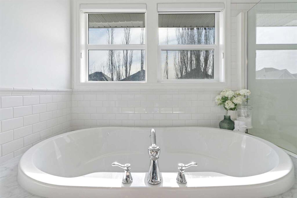 Location? Unbeatable. Custom Upgrades? Endless. This impressive home offers over 3,100 sq.ft. of fully finished living space in one of the most desirable areas of Mahogany. Just minutes from Mahogany West Beach, this property combines convenience, lifestyle, and quality craftsmanship throughout. Positioned on a quiet street directly across from a large green space and park, the home also provides incredibly easy access in and out of the community. Step inside and you’ll quickly see this is far from a typical home. Built with numerous custom features, the main floor showcases beautiful wainscotting, crown moulding, built-in shelving, and wide plank engineered flooring. The inviting living room with a gas fireplace flows into a spacious dining area perfect for entertaining. The dining space is highlighted by a skylight overhead that fills the room with an abundance of natural sunlight, creating a bright and welcoming atmosphere throughout the day. French doors off the dining room lead to the low-maintenance backyard, creating a seamless indoor-outdoor living space. The kitchen is designed to impress with a massive island offering additional seating, quartz countertops, stainless steel appliances, a smart fridge, corner pantry, and abundant cabinet and counter space. A charming beverage station complete with a wine fridge adds the perfect touch for morning coffee or evening drinks. Upstairs, the bright and open layout features a large primary retreat with a walk-in closet and a luxurious 5-piece ensuite with double vanities, glass shower, and relaxing soaker tub. Two additional spacious bedrooms—one with its own private balcony—plus a full bathroom and versatile flex space provide ideal room for a home office, kids’ play area, or additional lounge space. The fully finished basement continues to impress with 9-foot ceilings, a generous fourth bedroom with built-in wardrobes, and a beautifully finished 3-piece bathroom featuring heated floors, under-cabinet lighting, and a large glass shower. The cozy TV area with a second fireplace creates the perfect space for movie nights. The oversized heated garage with epoxy flooring is fully finished—perfect for storage, hobbies, or the ultimate man cave. Outside, the private backyard features mature trees along with upper and lower decks offering multiple seating areas to relax and entertain. With the lake, parks, and walking paths just steps away, this exceptional home offers the very best of lake community living in Mahogany. Your dream home awaits—schedule your private showing now!