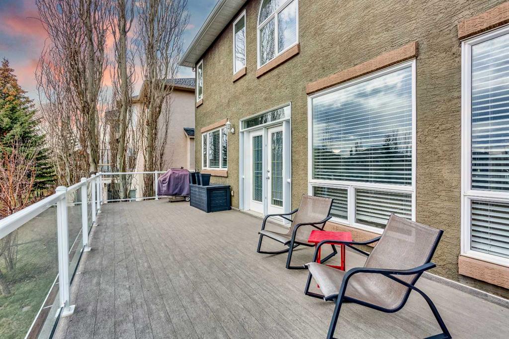 One of the home’s standout features is the large south-facing deck, perfectly positioned to capture abundant sunlight while overlooking the serene green space behind. This outdoor extension of the home is ideal for summer barbecues, morning coffee, or simply enjoying Calgary’s beautiful evenings in a quiet, private setting.