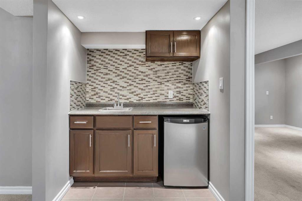 The fully finished walkout basement is designed for comfort and durability, featuring a premium Dricore subfloor system that provides a moisture barrier, insulation, and added warmth underfoot. The lower level includes a large rec/family/games area, a wet bar, a second cozy fireplace, a fourth bedroom, and a full bathroom—perfect for guests or extended family. Outside, enjoy a spacious, beautifully landscaped backyard with a storage shed, plus an oversized double attached garage. Ideally located close to schools, transit, amenities, and the South Health Campus, this home combines style, comfort, and convenience. This property truly shows spectacular—don’t miss your chance to view it!