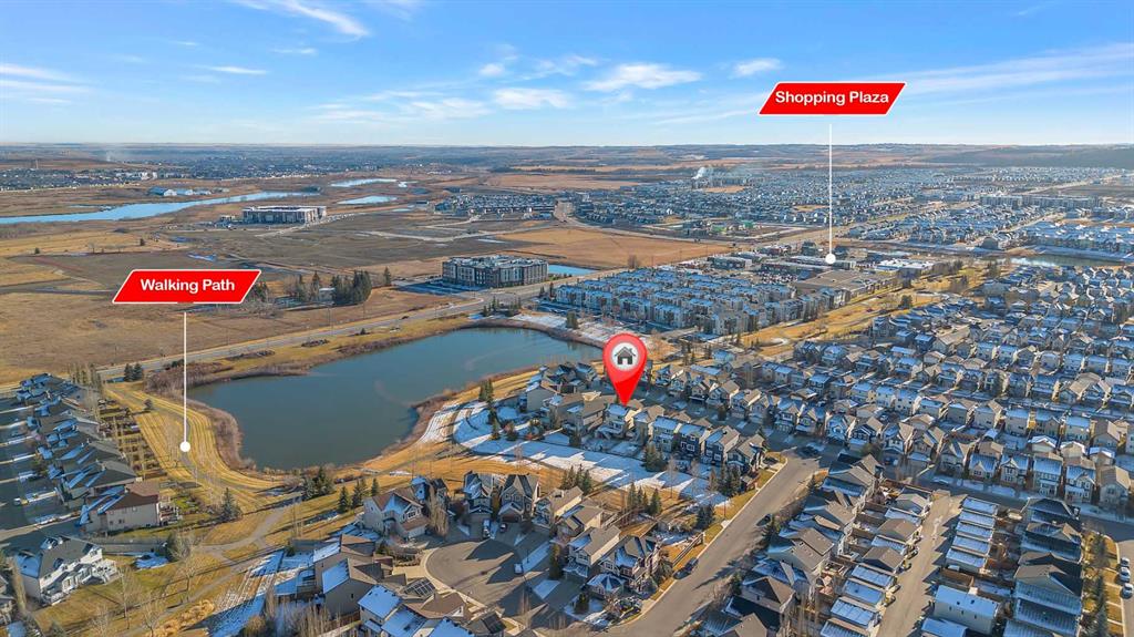 Welcome to this exceptional 2-storey walkout, perfectly situated on a quiet cul-de-sac and backing onto a serene walking path, green space, and picturesque pond. Located on a traditional lot with space on both sides (not a zero-lot-line property), this home offers privacy, room to grow, and over 2,800 sq. ft. of developed living space with immaculate pride of ownership. Inside, you’re greeted by gleaming hardwood floors, 9-ft ceilings, fresh paint, and an open-concept layout. The main level features a formal dining room and a bright living room with a cozy corner gas fireplace. Large windows capture tranquil views of the pond, bringing in an abundance of natural light. The beautifully updated kitchen is a chef’s dream, with a large center island topped in quartz, stainless steel appliances, maple cabinetry, a corner pantry, and a spacious bumped-out eating nook. Step through the patio doors onto a massive full-length deck with aluminum railing, perfect for morning coffee or evening sunsets, all while enjoying exceptional privacy. Upstairs, you’ll find a generous bonus room, a luxurious primary retreat with a walk-in closet and full ensuite, plus two additional bedrooms and another full bathroom.