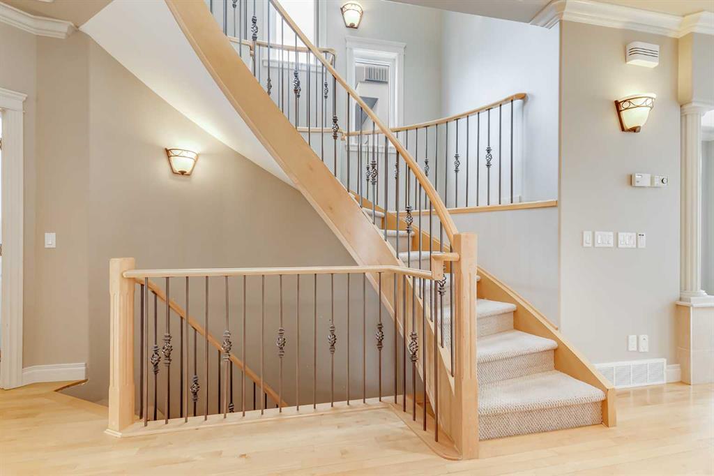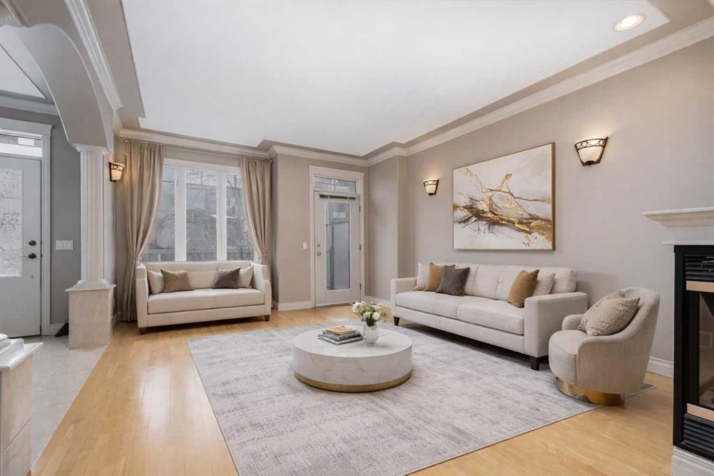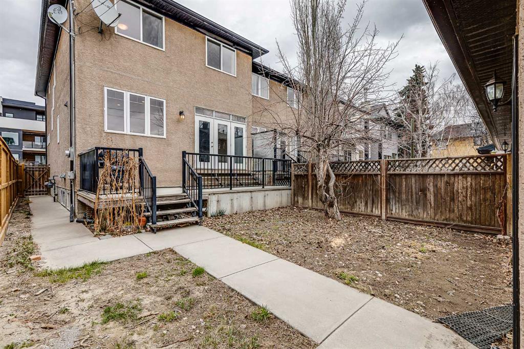Welcome to this beautifully designed semi-detached home in the highly sought-after community of Marda Loop. Offering nearly 3,000 sqft of thoughtfully designed living space, this home blends timeless architecture with modern comfort. From the moment you step inside, you’ll be impressed by the high ceilings, elegant crown molding, skylights, and a stunning curved staircase. The main floor features a spacious foyer perfect for welcoming guests, a bright living room with a three-sided fireplace, and a generous dining area ideal for entertaining. The kitchen is sure to impress with granite countertops, stainless steel appliances, a large pantry, abundant cabinetry, and a functional island with plenty of prep space. The sunny breakfast nook opens to your private, fully fenced backyard complete with a deck — perfect for BBQs and relaxing evenings outdoors. The yard provides convenient access to the double detached garage. Upstairs, the spacious primary retreat offers a luxurious 5-piece ensuite and walk-in closet. Two additional large bedrooms, a full 4-piece bathroom, and a dedicated laundry area complete the upper level. Two skylights flood the space with natural light. The fully developed basement features two additional bedrooms, a 4-piece bathroom, a large recreation area, and a rare cold room — perfect for extra storage and keeping food fresh. Renovations were started but not completed, giving you the opportunity to add your personal finishing touches and instantly build equity with new flooring and paint. Additional highlights include air conditioning and central vacuum.