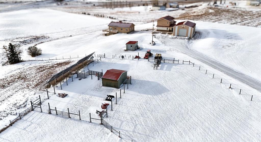 Amazing 24 acres with 3 bed walk out bungalow and rare commercial infrastructure (almost 4,000sf), located just minutes south of Calgary! Perfectly situated with easy access to Okotoks, and High River too. Previously a licensed retail operation for 14 years with a purpose-built COMMERCIAL COMPLEX. Suitable for a VARIETY OF BUSINESSES or live/work uses (subject to County approval). Land is cross fenced, hayed annually, and offers SUBDIVISION POTENTIAL (subject to approval). Exceptional water security includes year-round headwater spring feeding three interconnected ponds with registered agricultural water rights, a well, septic tank and 3,000-gallon cistern, multiple hydrants, and stock waterer. Power systems include Fortis power (25kVA), Kubota diesel standby generator (22kVA) with auto start, and 19.8 kWp solar array producing approx. $3,200/year in electrical savings. Property includes PRIMARY RESIDENCE (walkout 3-bedroom bungalow) and Commercial Complex with connected 2-STOREY building with fire-rated doors and dedicated exterior exit, a 1-storey building, and shop/warehouse with 12’ x 12’ overhead door (immaculately maintained and clean). Buildings have hydronic heating with HEATED CONCRETE FLOORS, A/C and hail-resistant roofing. SECONDARY SUITE potential (subject to approval). Other property features include a powered hay shed, gated entry with power, monitored security, stunning views and school bus access. A rare, infrastructure-rich opportunity close to Calgary.