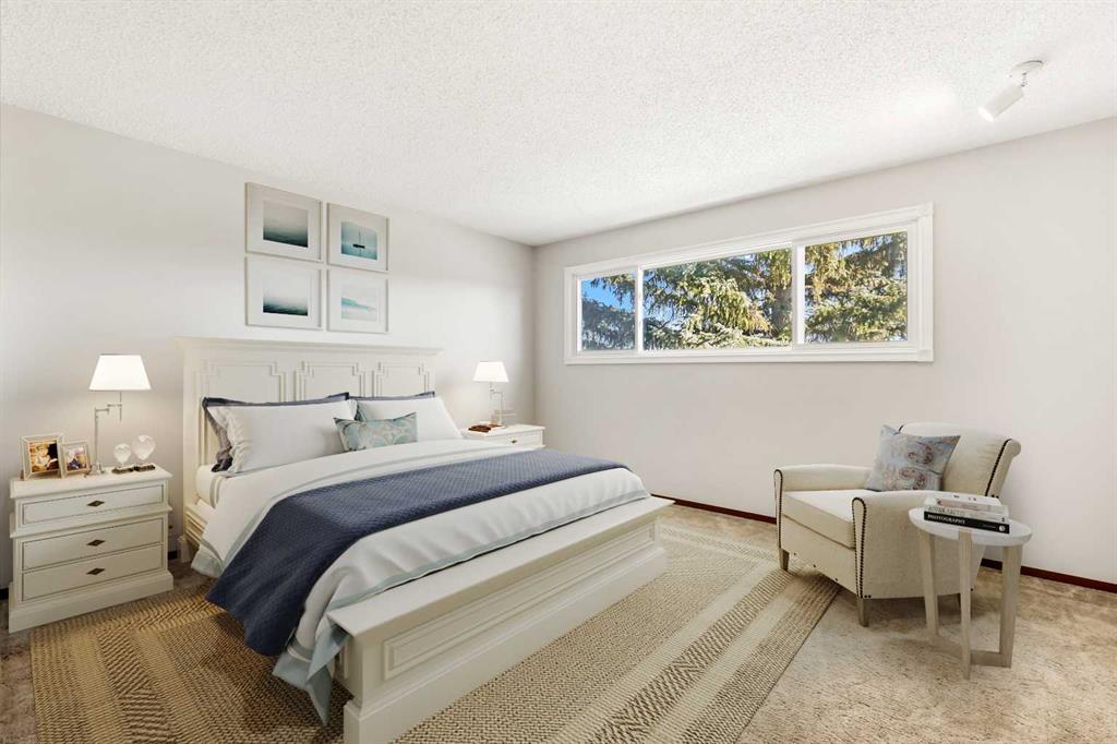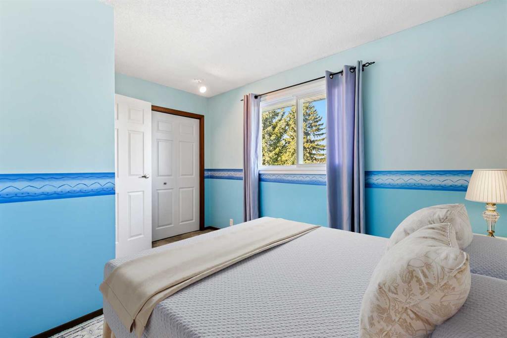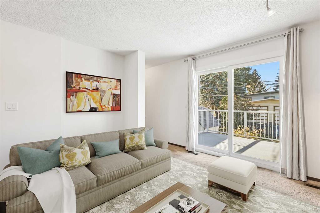 Outside, the private backyard is surrounded by mature trees and the front driveway provides parking for two vehicles. Set within walking distance of playgrounds, schools, City of Calgary LRT, shopping, and nearby police and fire services, this location offers both comfort and convenience.