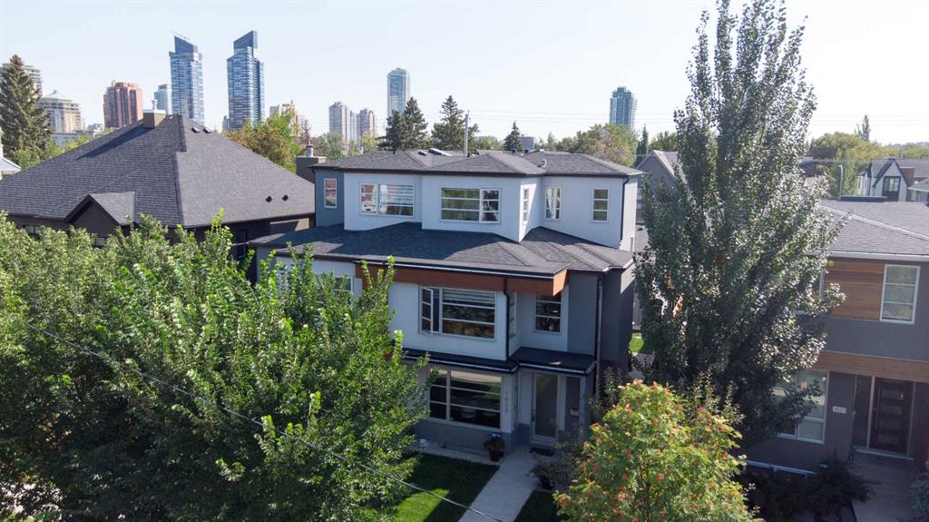 Located on a quiet, tree-lined street in the heart of Hillhurst, this stunning three-storey executive infill by Stone West Homes offers the perfect blend of luxury, style, and convenience. Just steps from the shops and dining of Kensington and minutes from downtown, this custom-built home spans over 2,900 sq. ft. of thoughtfully designed living space. The main floor features an open foyer and rich hardwood floors, with a modern kitchen showcasing white quartz counters, a striking backsplash, Viking stainless steel appliances, and custom cabinetry, while the adjacent dining area and living room—with pre-wired speakers and a cozy fireplace—create an inviting space for entertaining and daily living. Upstairs, two spacious bedrooms each have walk-in closets and share a full bath, complemented by a dedicated laundry room and a loft with built-in desk space. The top-floor primary suite is a true retreat, featuring vaulted ceilings, a second fireplace, and a spa-like ensuite with an oversized shower, freestanding soaker tub, and a massive walk-through closet illuminated by a skylight. The fully finished basement adds a fourth bedroom, full bath, wet bar, and in-floor heating for year-round comfort, making it ideal for guests or entertaining, with pre-wired speakers enhancing the home theatre experience. Outside, a recently sodded south-facing backyard with an aggregate patio offers a private, sun-filled retreat, while the double detached garage, low-maintenance yard, and included Vacuum system provide convenience and ease. All of this in the vibrant Hillhurst community, renowned for its proximity to Kensington’s shops and restaurants, scenic river pathways, community events, and an energetic, urban lifestyle just minutes from downtown Calgary.