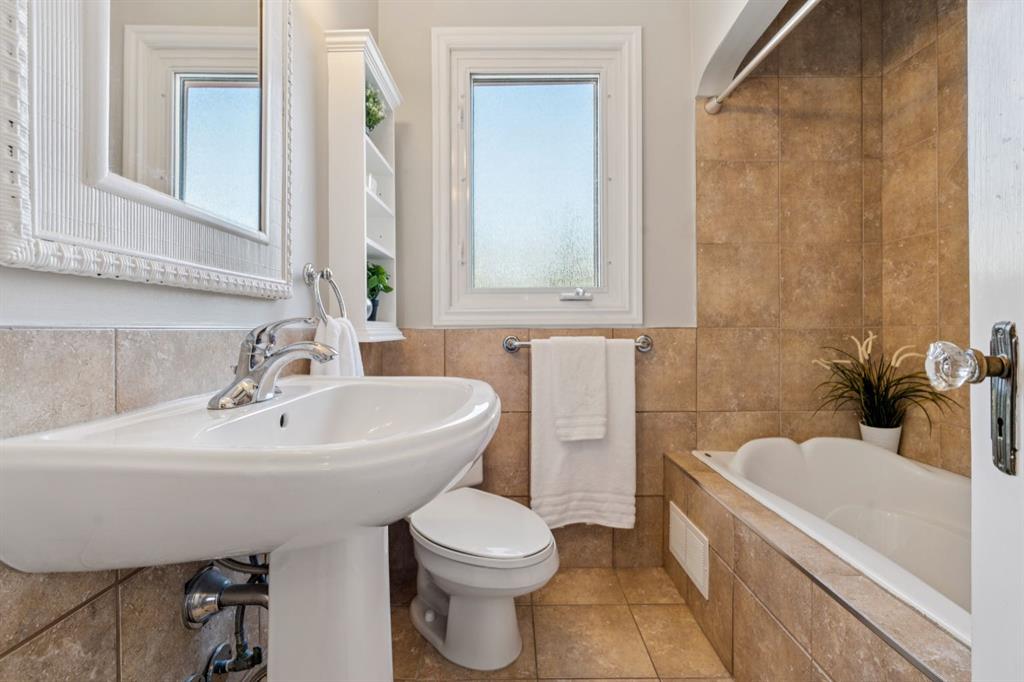 ATTENTION: INVESTORS, FIRST-TIME HOME BUYERS and DOWN-SIZERS- DON”T MISS THIS FANTASTIC OPPORTUNITY! Nestled on a tree-lined street in the vibrant inner-city community of Rosedale, this charming bungalow offers the warmth of a well-loved and well-maintained family home paired with thoughtful updates for modern living. This home offers over 2400 square feet of living space on a generous 50 X 120 LOT. From the moment you step inside, you’ll appreciate the timeless details that give this home its soul: original hardwood floors, graceful arched doorways, curved crown mouldings, crystal door knobs and soaring 9-foot ceilings. The bright living room is anchored by a large picture window and a cozy gas fireplace — the perfect spot to curl up and read a book on a Sunday afternoon. The formal dining room is ideal for entertaining and hosting holiday meals and dinners with friends. Designed with family living in mind, the expanded kitchen is truly the heart of the home. Bathed in natural light from the east and south, it offers generous prep & storage space, a breakfast nook, and stainless steel appliances. Whether enjoying your morning coffee or sharing the events of the day over an after school snack at the kitchen table, this is a space that brings everyone together. The main floor features three bedrooms — ideal for a young family — with one currently serving as a sunny home office overlooking the backyard. Downstairs, the fully renovated basement creates an inviting retreat for movie nights and family time, complete with a cozy gas fireplace, custom built-in shelving, and a beautifully updated bathroom with heated floors and a glass shower. The additional 4th bedroom is perfect for guests and the large laundry room with sink and storage space offer a ton of convenience and functionality. Central air conditioning ensures year-round comfort, while a newer hot water tank (1 year) and roof (5 years) offer peace of mind. Step outside and discover a private backyard oasis. Mature trees, a perennial garden, a custom cedar fence, and thoughtful landscaping create a wonderful setting for summer barbecues, outdoor games, and evenings around the fire pit all year long. An exceptional location, steps away from Rosedale School, parks, walking paths on Crescent Ridge and the shops and cafes of Kensington, plus minutes to downtown SAIT and Foothills hospital. This is more than just a house — it’s a place to grow, gather, and create lasting memories. Welcome Home!