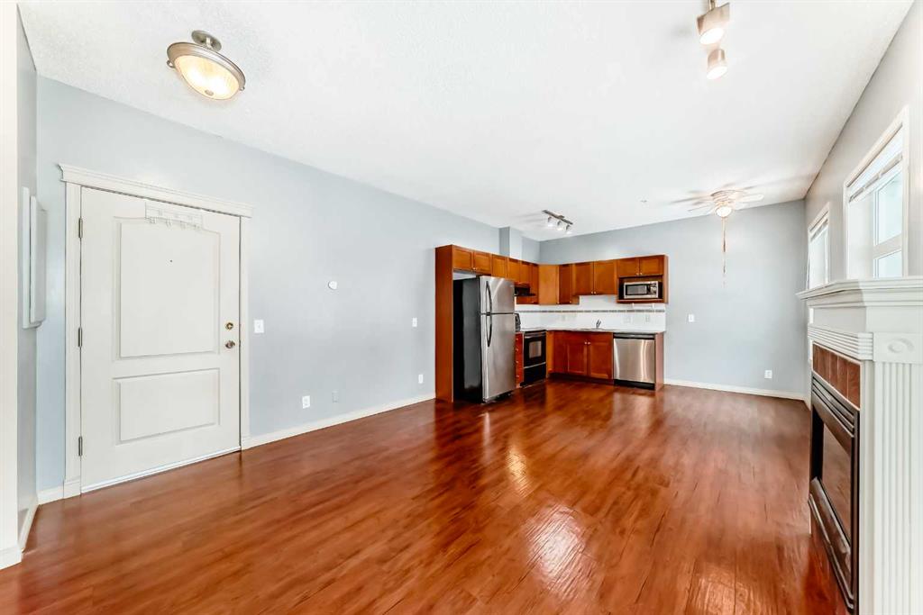 Great location! This well-maintained and extensively updated one bedroom, one bathroom condo is located in the highly desirable Downtown East Village and offers exceptional value. The open-concept living area is spacious and inviting, complete with a electric fireplace. Adjacent to the kitchen is a versatile flex space suitable for a home office, workstation. The unit offers one generously sized bedroom with large windows that provide abundant natural light with 4-piece bathroom. In-suite laundry is conveniently located and neatly enclosed. A private balcony shows outdoor space for relaxation. The property also includes one heated, secure underground parking stall which is rented for $260/month currently. The bright and functional unit enjoys a prime location within walking distance to the Bow River, Chinatown, Prince’s Island Park, shopping centers, C-Train access, cafes, restaurants, bars, the Central Library, Studio Bell, and other key amenities. The area boasts an excellent walk score and is ideal for both pedestrians and cyclists. The building is professionally managed and well cared for. This property is an excellent opportunity for first-time buyers, investors, or those seeking a well-appointed home in a central downtown location.