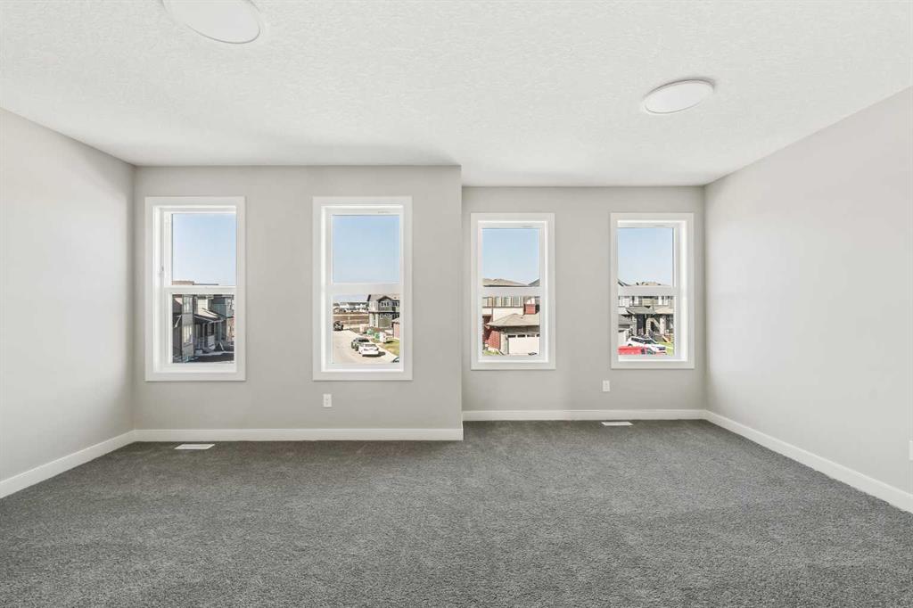 Welcome to your beautiful, brand-new Alliston build featuring 4 bedrooms, 3 full bathrooms, nearly 2,100 sq. ft. of expertly designed living space, and a side entrance to the basement, perfect for future development. This home is ideally located on a pie lot on a quiet crescent, where kids can safely play outside and you can enjoy peaceful mornings with a cup of coffee while watching the sunrise from the views out your East backyard windows. Step inside and be greeted by stylish vinyl plank flooring and airy 9-foot ceilings that flow through the open-concept main floor. The chef-inspired kitchen boasts floor-to-ceiling cabinetry, quartz countertops, a spacious island, and a sleek stainless steel appliance package with a gas stove. A dream for anyone who loves to cook and entertain. The adjoining dining area and living room are bright and welcoming, anchored by a striking electric fireplace that serves as the space’s focal point. A main-floor bedroom and a complete bathroom offer flexibility for guests, a home office, or convenient main-floor living. The mudroom off the 19×20 garage (with an additional 4′ for stair access) ensures there’s ample room for parking two vehicles. Upstairs, the primary suite is your private retreat, featuring a walk-in closet with natural light and a spa-inspired ensuite with a large shower and soaker tub. Two additional spacious bedrooms, another full bathroom, a convenient laundry room, and a front-facing bonus room complete this well-planned upper level. The unfinished basement, with its separate side entrance, offers loads of potential. It’s already equipped with bathroom rough-in and wet bar rough-in with water lines, giving you a head start on future development possibilities. Located in the vibrant community of Belvedere in Calgary’s southeast, this home offers the perfect blend of urban convenience and relaxed suburban living. With nearby parks, schools, shopping, and easy access to major routes, Belvedere is a welcoming, family-friendly neighbourhood where you can truly put down roots. Photos are representative and are of the same model home with similar colour pallet/finishings. RMS has been applied to builder blueprints. Taxes to be assessed.