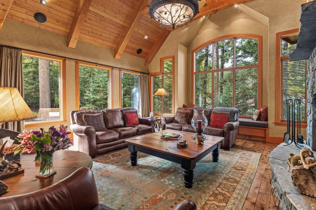Located in Cairns on the Bow, just minutes from the gates of Banff National Park, this custom 4,000+ sq ft timber-frame residence offers a rare blend of privacy, warmth, and mountain character. Set on a beautifully treed 17,642 sq ft lot within Canmore’s only gated community, the home combines natural seclusion with exceptional craftsmanship.