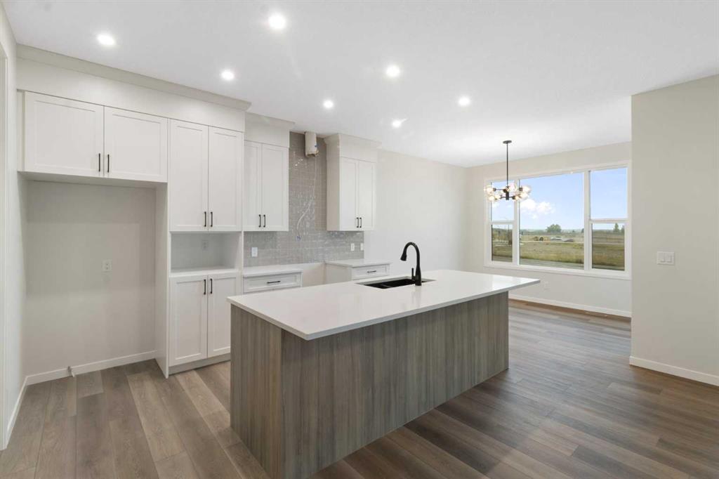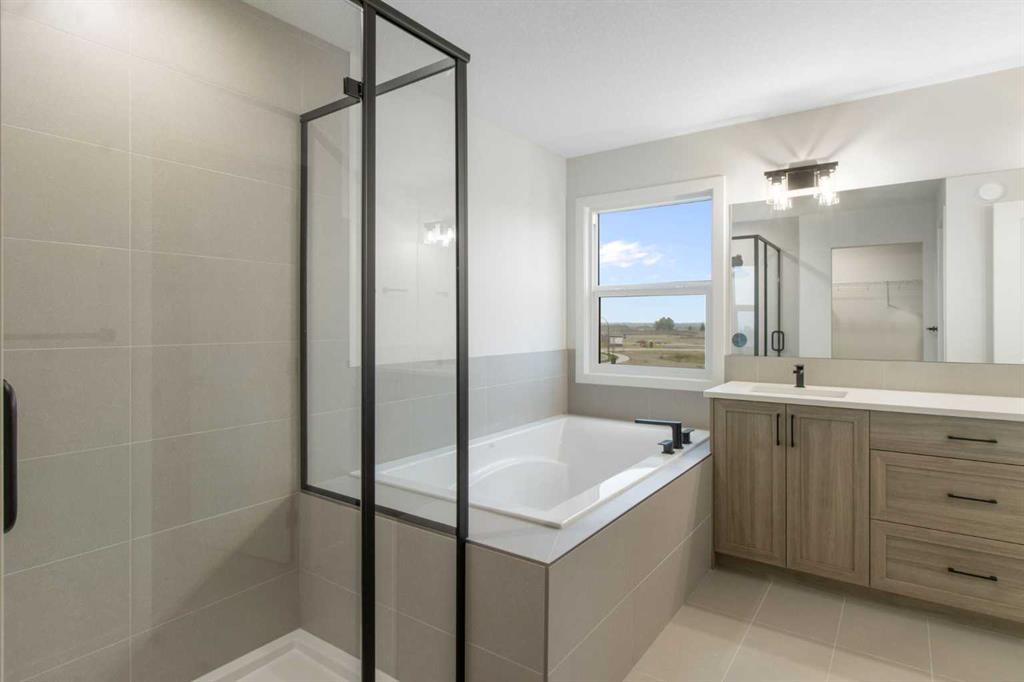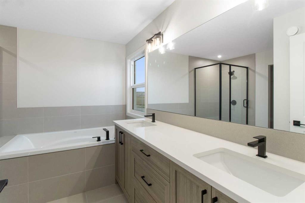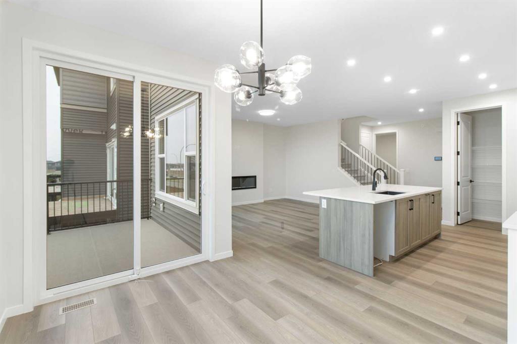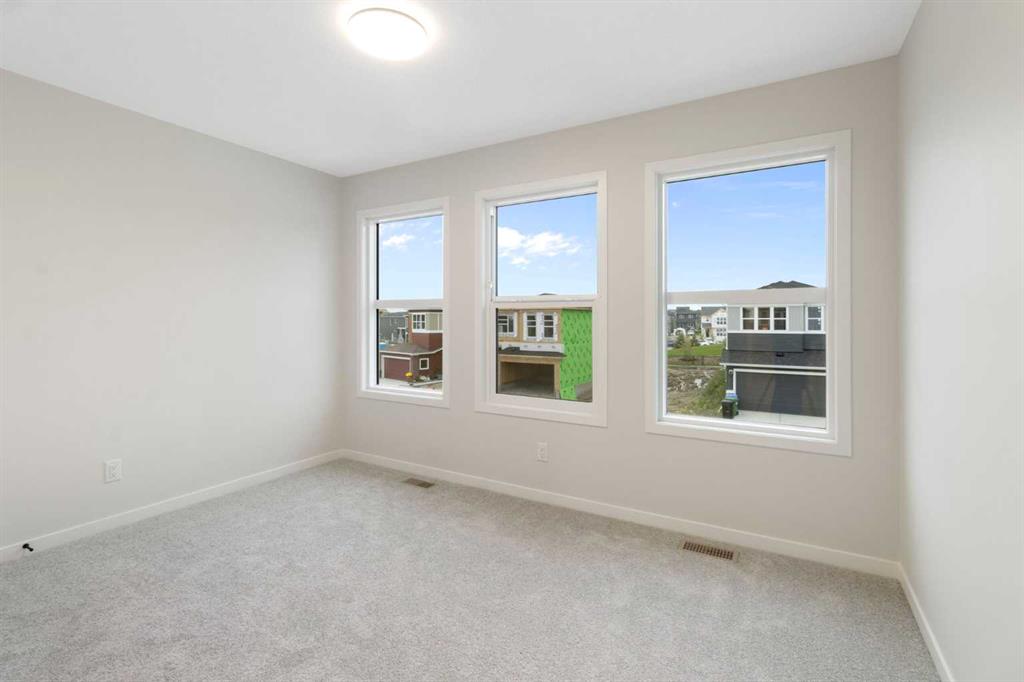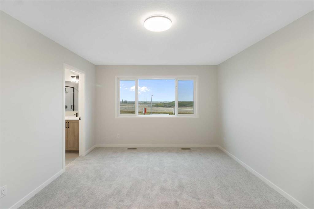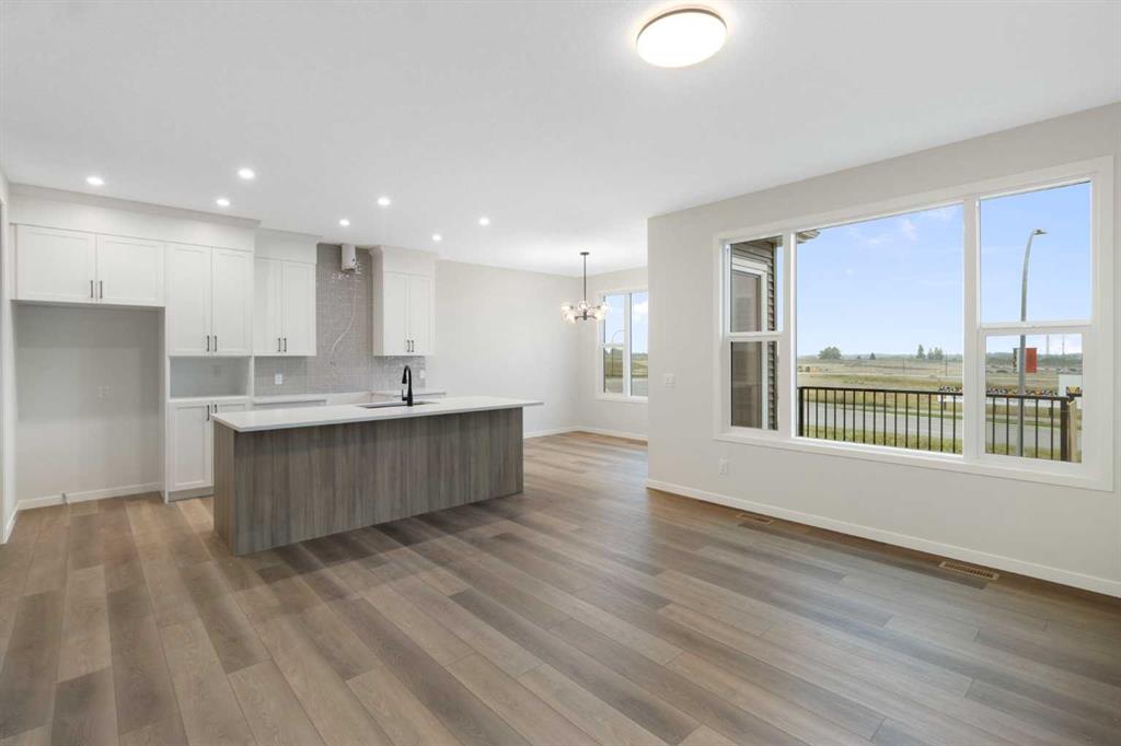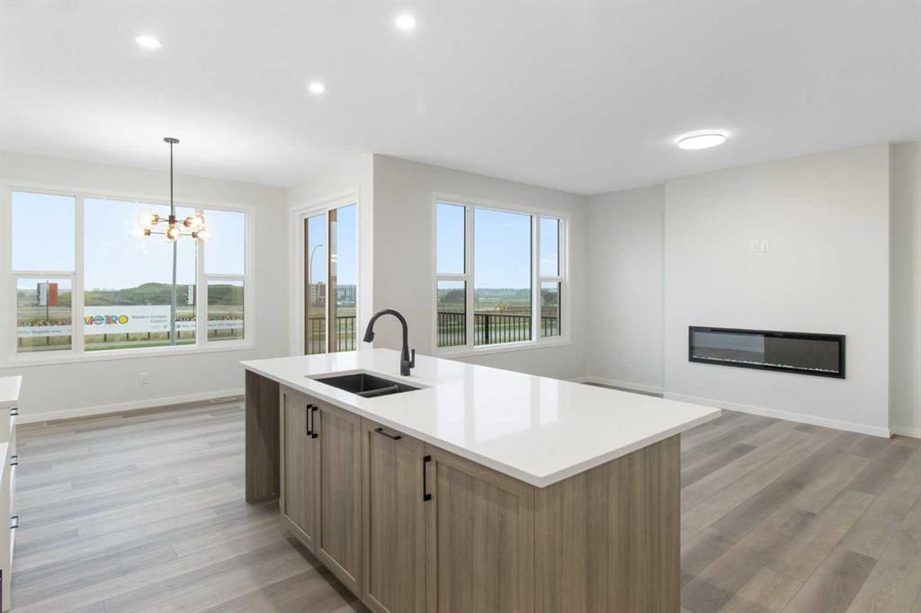 Welcome to your next chapter in the vibrant and growing community of Belmont in SW Calgary. This is a neighbourhood known for its family-friendly atmosphere, scenic pathways, and quick access to shopping, schools, and major routes like Macleod Trail and Stoney Trail. Whether you’re a growing family or looking for multigenerational flexibility, this 5-bedroom home checks all the boxes. Step inside and be greeted by light brown luxury vinyl plank flooring that flows seamlessly throughout the open-concept main floor. A versatile main floor bedroom perfect for guests, a home office, or family members, sits beside a full 3-piece bathroom for added convenience. The heart of the home is the upgraded chef-inspired kitchen, where bright white perimeter cabinets are beautifully balanced by a warm wood-toned island, upgraded designer backsplash tile, sleek quartz countertops, and striking black hardware throughout. You’ll get to choose your own appliances with an allowance of $7000 from the builder’s supplier. The kitchen overlooks both the spacious great room featuring a beautiful electric fireplace and sunny dining nook, creating an effortless flow for entertaining and everyday living. Off the dining area, step out to your rear-facing deck, perfect for summer BBQs and outdoor relaxation. Upstairs, cozy carpet welcomes you to a thoughtfully laid-out second level featuring a central bonus room ideal for movie nights or a kids’ play zone. The primary bedroom is a true retreat, complete with a spa-inspired ensuite (double vanities and a walk-in shower) and a generous walk-in closet. Three more bedrooms, a full bathroom, and an upper-floor laundry room round out this functional upper level. An attached garage adds convenience, and the unfinished walkout basement offers room to grow or customize to your lifestyle. Bonus: the basement is roughed in for a future legal suite (subject to permitting and approval by the city)! Create your backyard oasis with a $2,000 landscaping allowance to be provided to the buyer upon completion of landscaping. Whether you’re looking for more space, smart design, or a modern aesthetic, this Belmont beauty offers it all, set in a community that blends nature, accessibility, and a strong sense of connection. Don’t miss your chance to own in one of Calgary’s most exciting new neighbourhoods – book your showing today! *Some photos are Virtually Staged.*