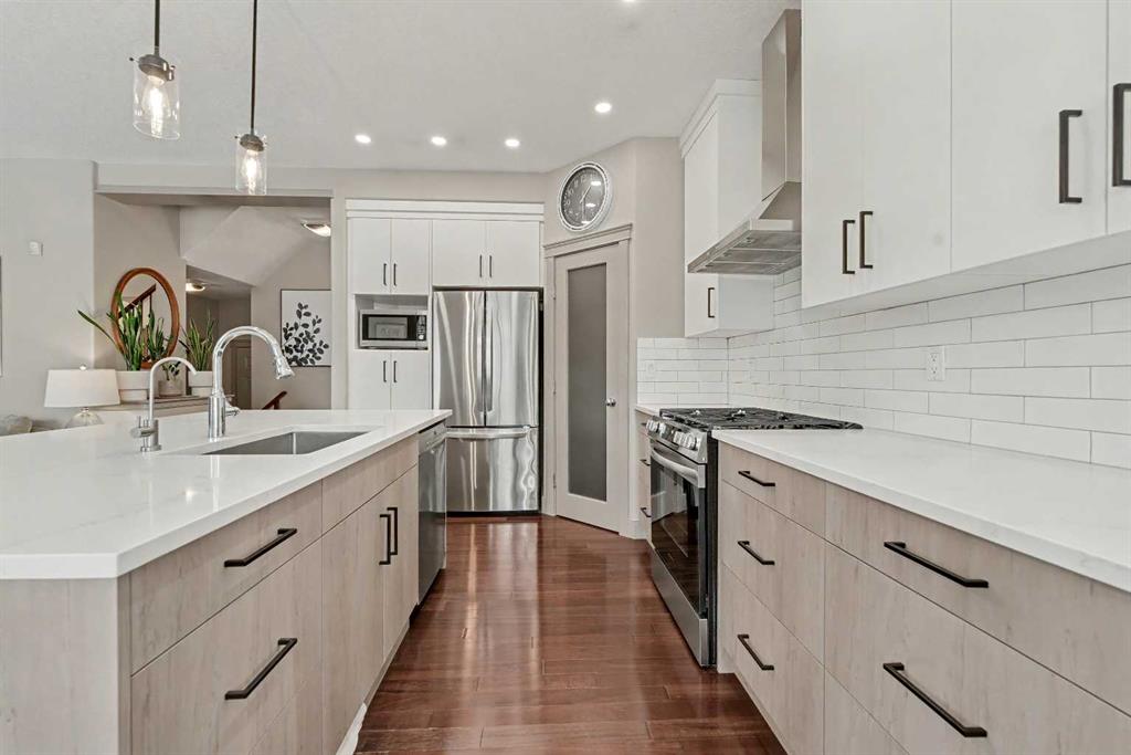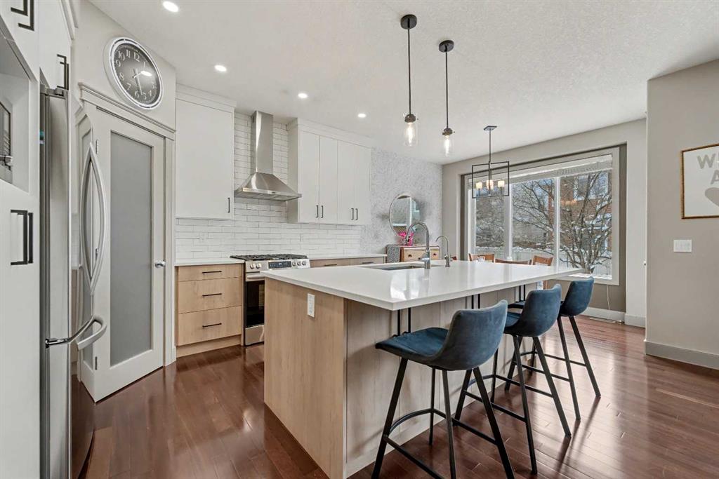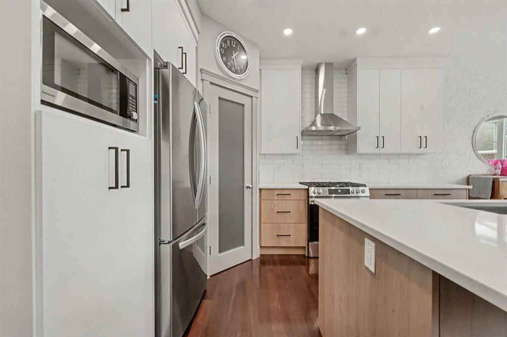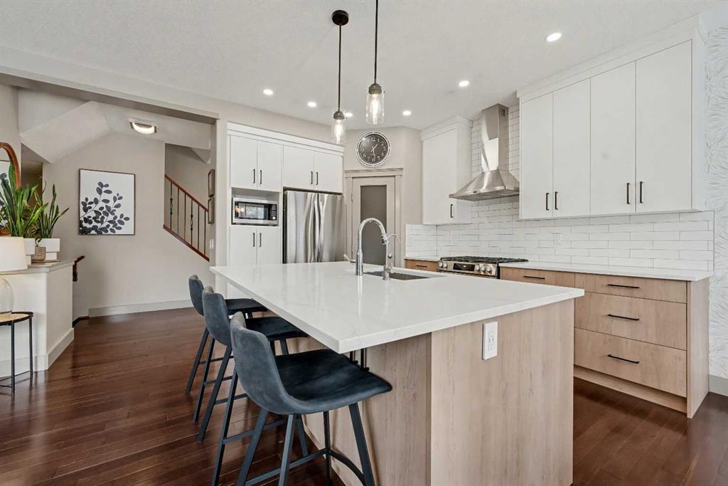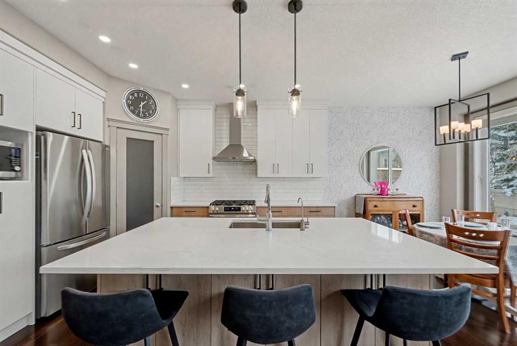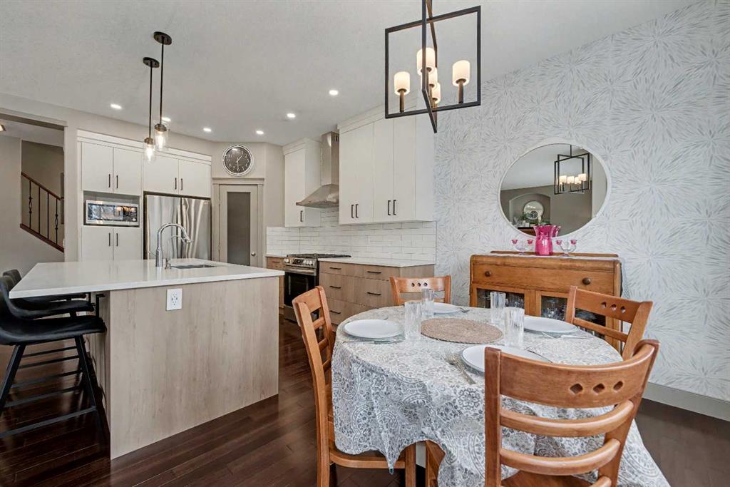 Step inside to a spacious, inviting front entry that flows into a bright open-concept main floor. The newly renovated chef-inspired kitchen is a true standout, featuring a large island with extra seating, farmhouse sink, corner pantry, stainless steel appliances, and a gas stove, perfect for cooking and entertaining. Spacious dining room offers access to the backyard! The adjoining living room offers warmth and charm with its gas fireplace, creating the ideal space to unwind. A 2pc powder room and convenient main floor laundry room complete this floor!