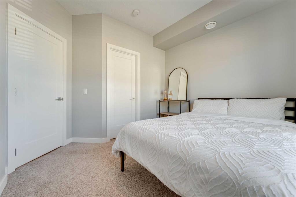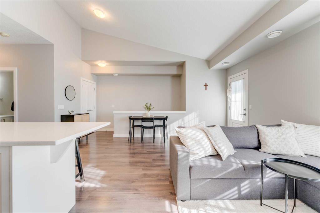 Welcome to this well-maintained, bright and modern 2-bedroom, 1-bathroom townhouse nestled in the vibrant community of Evanston. This beautiful townhouse is perfect for comfortable living and effortless entertaining featuring an open concept main floor layout with a bright living room, a functional kitchen with a centre island and a sunny south-facing exposure that fills the vaulted open floor space with natural light. Decorated in a neutral colour palette, this home also includes rough-ins installed for Air Conditioner and Vacu-Flo vacuum system.
