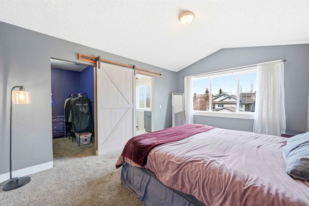 The primary suite is located on its own upper level, providing privacy and separation from the main living space. It includes a walk-in closet and a fully updated 3-piece ensuite finished entirely in microcement, creating a tranquil, spa-like feel that enhances the sense of relaxation and retreat.