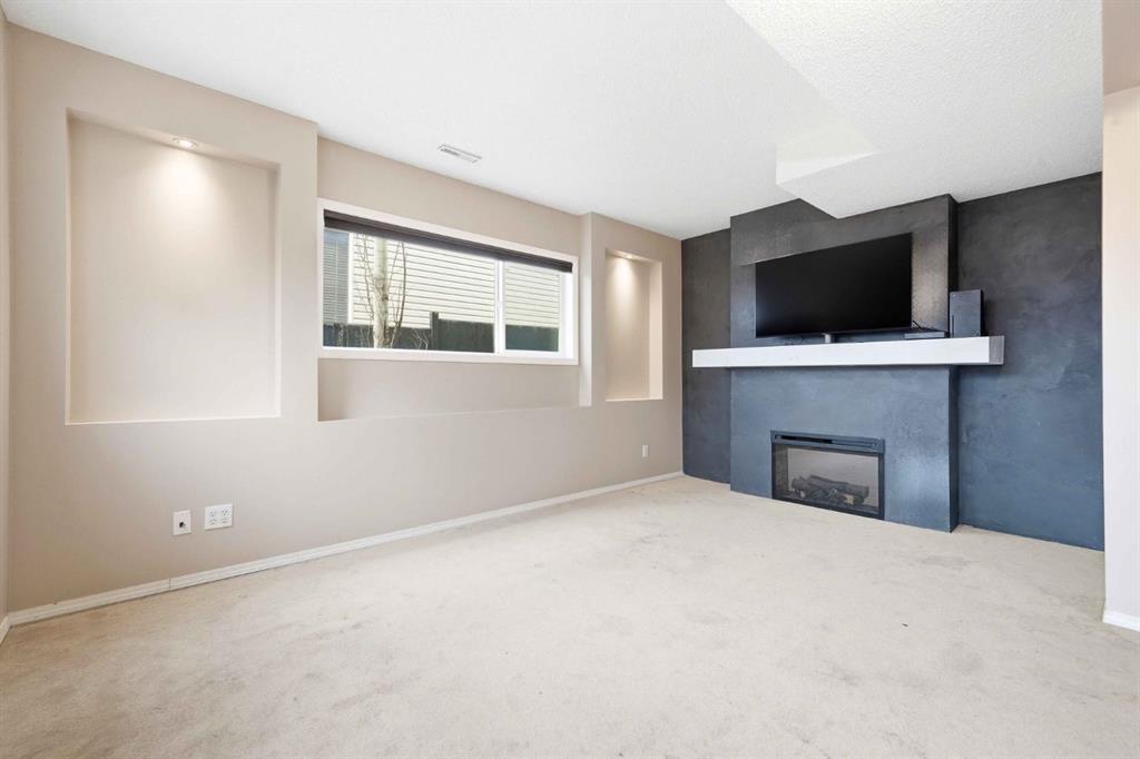 The fully developed walk-out basement significantly expands the home’s living space, featuring two additional bedrooms, a large recreation room, and a dedicated media room ideal for movie nights or entertaining guests. The media room is highlighted by another elegant Venetian plaster feature wall, tying the home’s refined design elements together. A third updated 3-piece bathroom, convenient basement laundry, and fresh paint throughout complete this lower level.