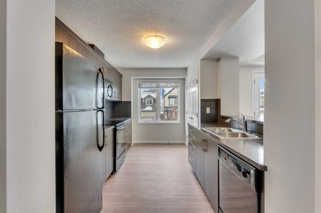 It’s not often you find an End-unit townhome with no condo fees and over 1,400 sq ft of living space that’s recently refreshed with new paint, carpet, and vinyl flooring. This home feels clean, updated, and move-in ready. The main living area is open and spacious, with a seamless flow between the living room, dedicated dining space, and kitchen. A functional breakfast bar adds extra seating, while large windows bring in plenty of natural light throughout the day. Step out onto the upper deck, perfect for enjoying summer evenings. Upstairs, the primary bedroom offers a comfortable retreat with a walk-in closet and easy access to the full bathroom. The second bedroom is well-sized and flexible, whether you need space for a roommate, kids, or a home office. The main level includes a convenient powder room, laundry area, and additional storage to keep everything organized. A solid option for anyone looking for low-maintenance living without condo fees, with a bright, functional layout. Located in the desirable neighbourhood of Windsong, close to schools, parks, ponds and pathways, and offering quick access in and out of Airdroe, as well as to shops and amenities.