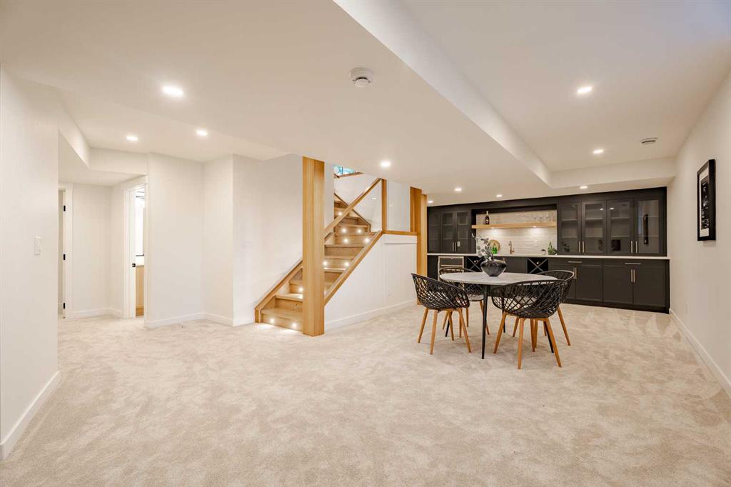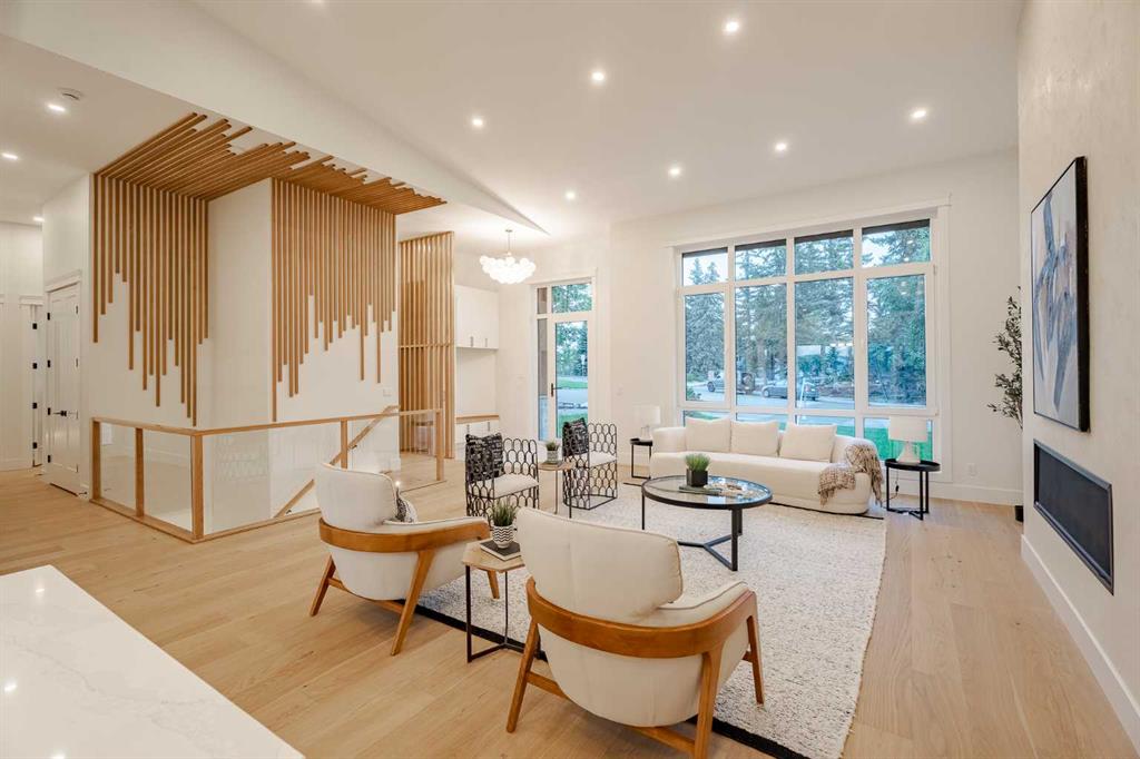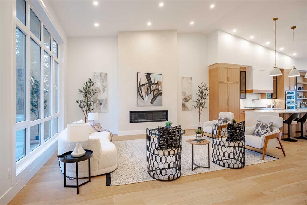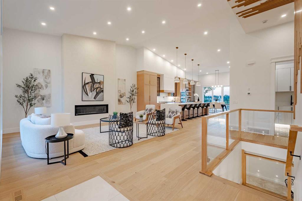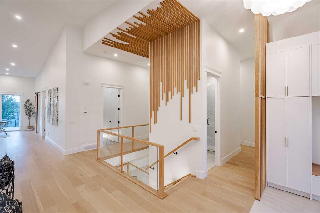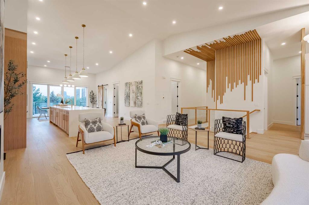 Here it is, a once in a lifetime opportunity to own a ~2,400 sqft bungalow that exemplifies the pinnacle of luxury living—flawlessly designed and masterfully built. Located in coveted St. Andrews Height situated on a large lot with stunning views of downtown Calgary, this home defines luxury while encapsulating timeless elegance, making it an absolute masterpiece. The luxurious presence of this home is instantly exemplified by the stunning curb appeal, with a truly unique modern farmhouse look, featuring stone and wood accents, all highlighted by an exposed concrete pathway leading to your grand entryway. Upon entering, your eyes are drawn to the jaw dropping 12-feet ceilings on the main level, featuring a grand 16-foot vault. The large living area is complete with an elegant venetian plastered gas fireplace and a large window showcasing your stunning downtown views! The main level of this grand residence is filled with natural light with no outdoor noise, thanks to the TRIPLE PANE ‘Tilt and Turn’ European windows. The designer kitchen encapsulates this house as an entertainer’s dream with its stunning cabinetry featuring REAL oak cabinets, glass cabinetry, 14-foot island, and stunning paneled JennAir appliance package, perfect for any chef! Next to the kitchen you have a large dining area that features a stunning European style patio slider that provides an abundance of light and leads directly to the deck and rooftop patio, encouraging a seamless indoor/outdoor lifestyle. Stepping back inside, you have a large mudroom and a dedicated pantry room ensuring no shortage of storage. The main floor continues to wow with a central staircase, featuring a glass railing and custom oak paneling acting as the true centerpiece of this home. This level also features a dedicated laundry room and a stunning 3-piece common bathroom with a custom shower. Down the hall you are welcomed to one of TWO primary bedrooms. The first primary bedroom features a large closet and a 3-piece bathroom with a custom-built shower and heated flooring. Moving to the second primary bedroom the wow factor continues with a custom walk-in closet, a stunning 5-piece bathroom, with dual vanities, a free-standing tub, heated flooring, a large custom shower, and a stunning chandelier over the tub. This room also includes a lookout patio – perfect for that morning coffee! The main level is complete with a third bedroom, making this home perfect for families of all sizes. Like the main floor, the basement of this home is an entertainer’s dream! Starting with the open Rec Room featuring a large entertainment unit and a large wet bar. The lower level is complete with 2 additional bedrooms and a 4-piece bathroom. The fully finished triple car garage features a roof top patio, transforming the backyard into an oasis, perfect for hosting. This home had no item overlooked and comes with new home warranty to put your mind at ease. Luxury, Functionality, Location and Unbeatable Value!