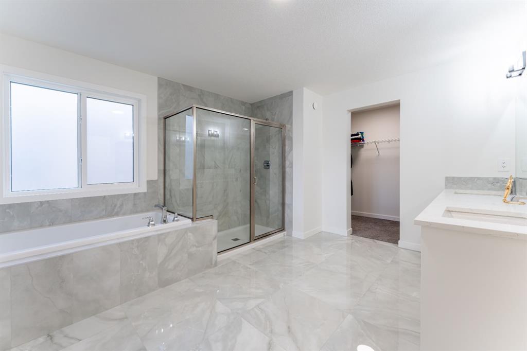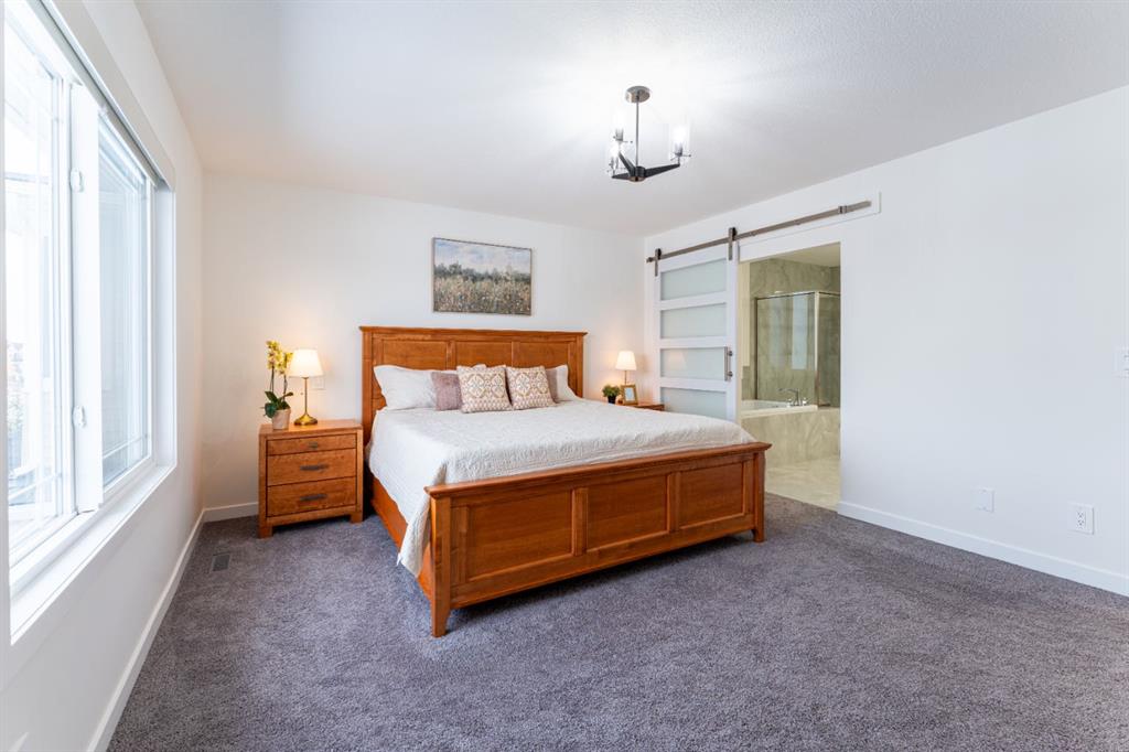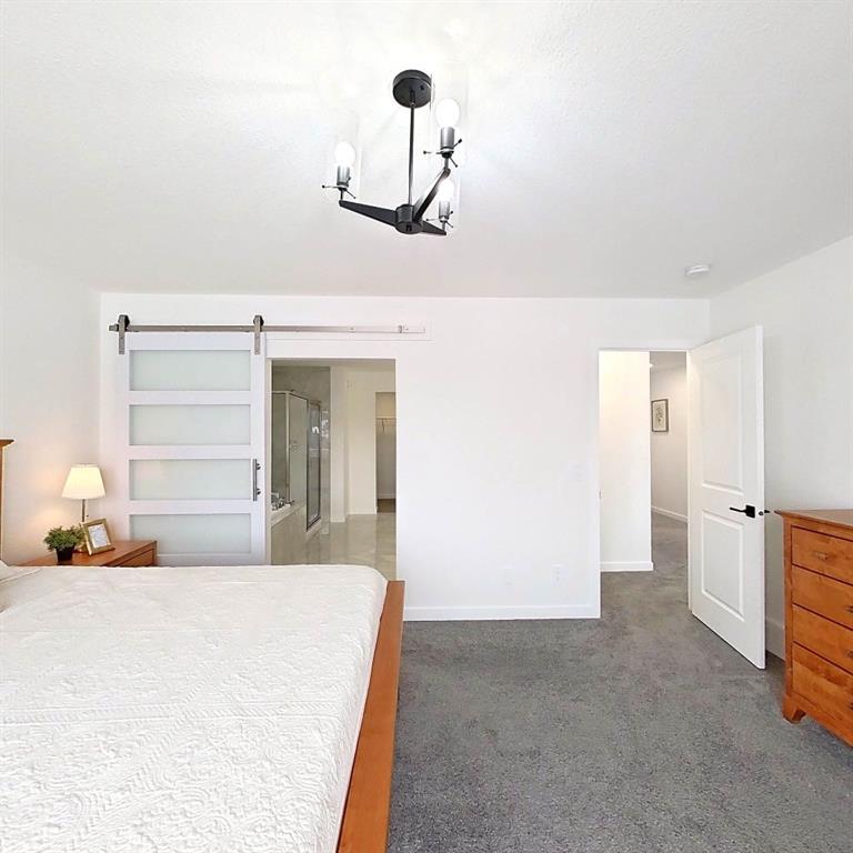 The primary suite is like none other, we dare you to find a LARGER bathroom. Complete with a stylish BARN DOOR, a large tiled shower with a built-in bench, a relaxing soaker tub, and upgraded 12 x 24 tile throughout. A bank of three drawers adds both convenience and extra storage as well as a large walk-in closet.Â