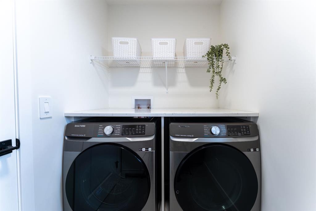 Additional thoughtful features include rough-ins in the basement for a future wet bar, making it easy to customize the space to suit your needs. The laundry room is equally impressive, offering ample storage, a quartz folding counter over the washer and dryer, and a convenient sink.