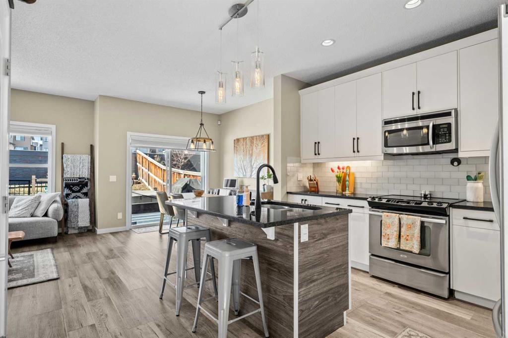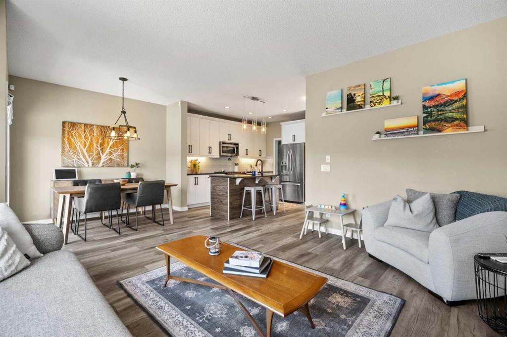 The main level presents an open-concept layout designed for effortless living and entertaining. Elegant flooring flows throughout the space, connecting a bright living area with a well-appointed kitchen featuring sleek cabinetry, generous counter space, and a seamless transition into the dining area. The layout encourages connection while still offering defined spaces for everyday comfort, whether hosting guests or enjoying quiet evenings at home.