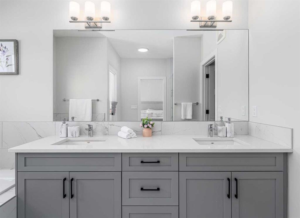 Upstairs features luxury vinyl plank flooring throughout — a completely carpet-free home. You will find four generous bedrooms, including a primary retreat with stunning mountain views, a spacious walk-in closet, and a large ensuite. The additional three well-sized bedrooms share a spacious bathroom, and the upper-level laundry room adds everyday convenience.