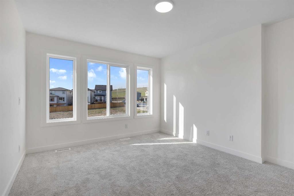 Brand new home built by Homes by Fifty Six, located in Heritage Hills of Cochrane. This home is loaded with upgrades & features which include: quartz, LVP, Tile, electric Fireplace, oversized garage, wrought iron railings, lots of windows allowing lots of natural lighting, 9′ ceilings main & lower, walk through pantry, south facing yard, back lane & much more. The main floor features a den, 2c bath, spacious great room with fireplace & a good size kitchen that offers an island, walk through pantry & breakfast nook that has access to the yard. The upper floor features a bonus room, 4pc bath, laundry & 3 good size bedrooms. The primary bedroom offers a walk in closet & full ensuite. The lower level is awaiting your ideas. Heritage Hills offers a blend of small-town charm and modern amenities. Residents enjoy access to parks, green spaces, and local conveniences such as Mountain Ridge Plaza, which hosts services like a pharmacy, fitness center, and dining options. The community is served by designated schools including Glenbow Elementary, Mitford School, and Bow Valley High School. With its tranquil atmosphere and proximity to both Calgary and outdoor recreational areas, Heritage Hills is an attractive choice for families and individuals seeking a balanced lifestyle. Fifty6 is devoted to the craft of legendary home-building. With a heritage dating back to 1956, building on the past and bringing a modern perspective to homebuilding and design. Click on link to view 3D walkthrough.