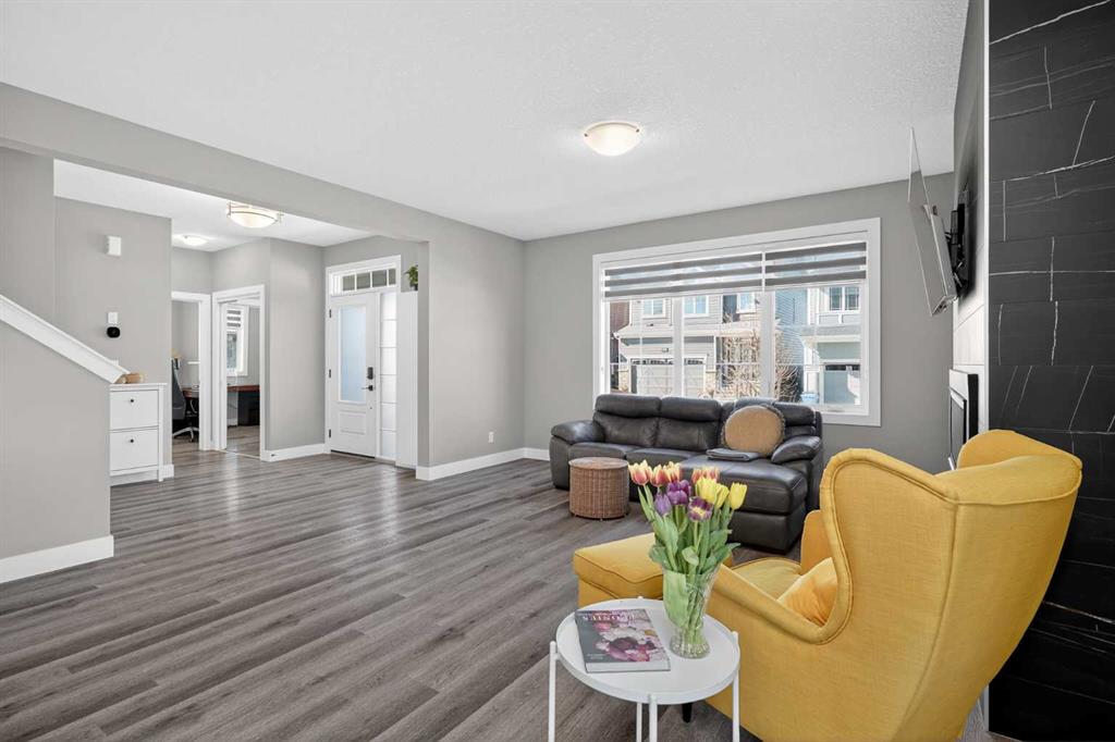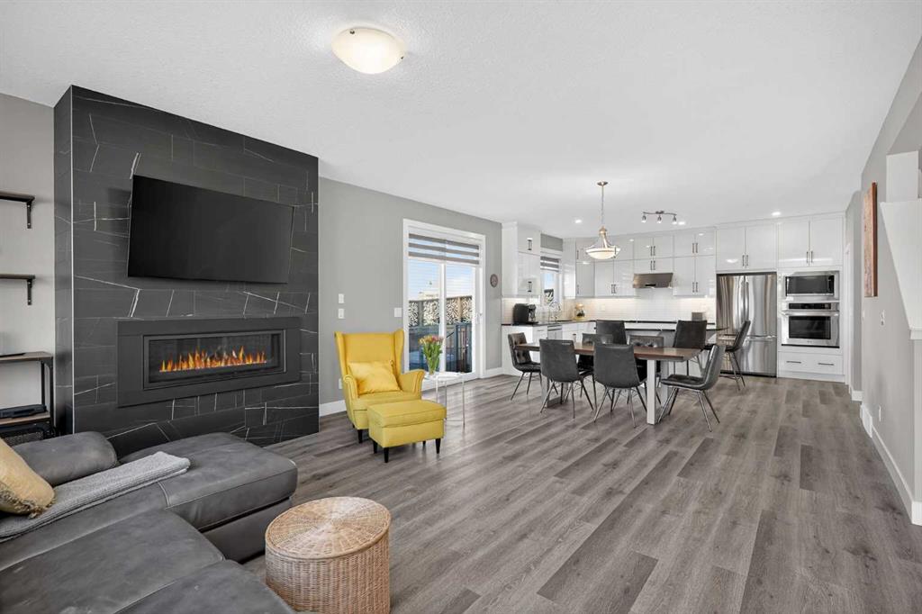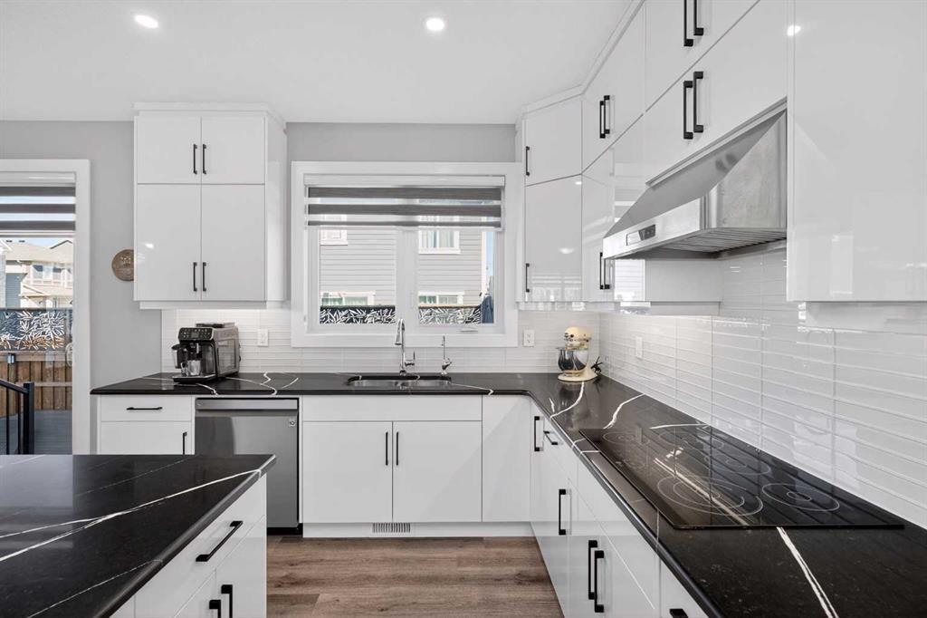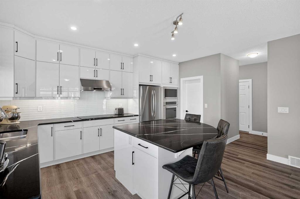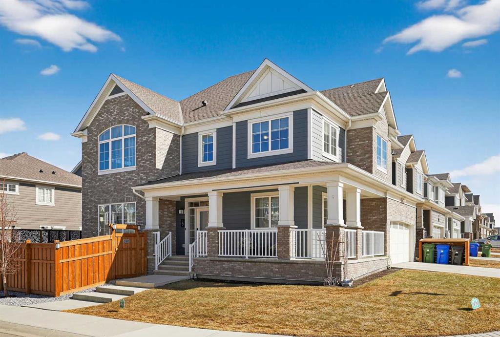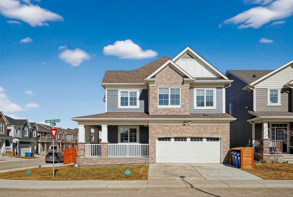 Set on a prominent corner lot in Yorkville, this fully finished 2,414 sq ft home makes a strong first impression with its upgraded Georgian Colonial exterior—an elegant blend of brick and Hardie board, complemented by a welcoming wraparound front porch that adds both charm and usable outdoor space. Inside, the layout is both functional and refined. The main level features 9’ ceilings and durable LVP flooring, with a spacious kitchen designed to anchor the home. Quartz countertops, full-height cabinetry, a built-in wall oven, and a distinctive curved island bring both style and practicality together. The living room is warm and inviting, centred around a 45″ fireplace with a full-height tile surround, while the dining area offers a natural space for everyday meals or hosting. There’s a main floor office with a built-in desk and cabinetry that stays, and a mudroom that goes beyond standard—with a built-in dog wash that doubles as the perfect spot for muddy boots or cleanup after a long day. Upstairs, enjoy the grand feeling of 9’ ceilings with four well-proportioned bedrooms, including a primary suite with a 5-piece ensuite and walk-in closet. There’s even a bright bonus room, adding flexibility for relaxing or gathering, and the laundry room is finished with custom-built-in cabinetry for added convenience. A second full 5-piece bathroom, with an additional central cabinet, completes the upper level. The builder professionally finished the basement, extending the living space with a large family room, a fifth bedroom, a 3-piece bathroom, and a substantial storage area. The pool table can be included, creating an easy transition into a fully usable lower level. Outside, the landscaping is complete and thoughtfully designed, featuring a large low-maintenance deck, stonework, and a fully fenced yard that’s ready to enjoy. The corner lot provides additional light and space, complemented by a double-attached garage, driveway, and ample street parking. The home is also equipped with a Kinetico water system, adding an extra layer of everyday comfort and quality. Yorkville is a growing southwest Calgary community known for its wide streets, planned green spaces, and pathway connections. With convenient access to Macleod Trail and Stoney Trail, along with nearby shopping, dining, and everyday amenities, it offers a balanced lifestyle with both accessibility and room to grow. A well-executed home with meaningful upgrades, a functional layout, and a finished outdoor space that’s ready from day one.