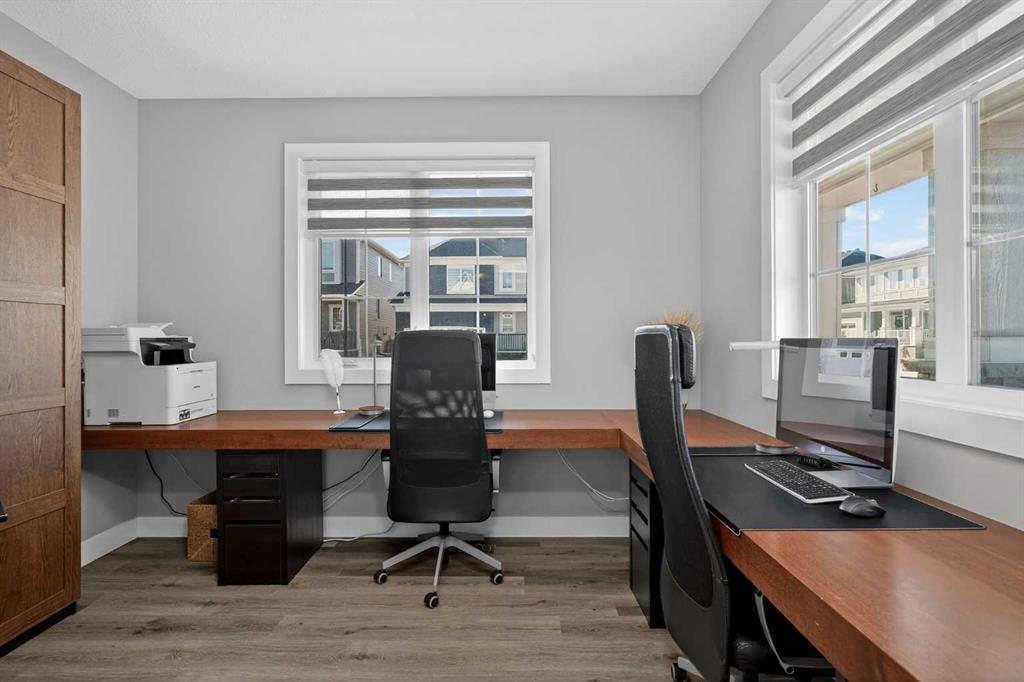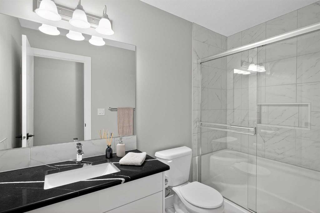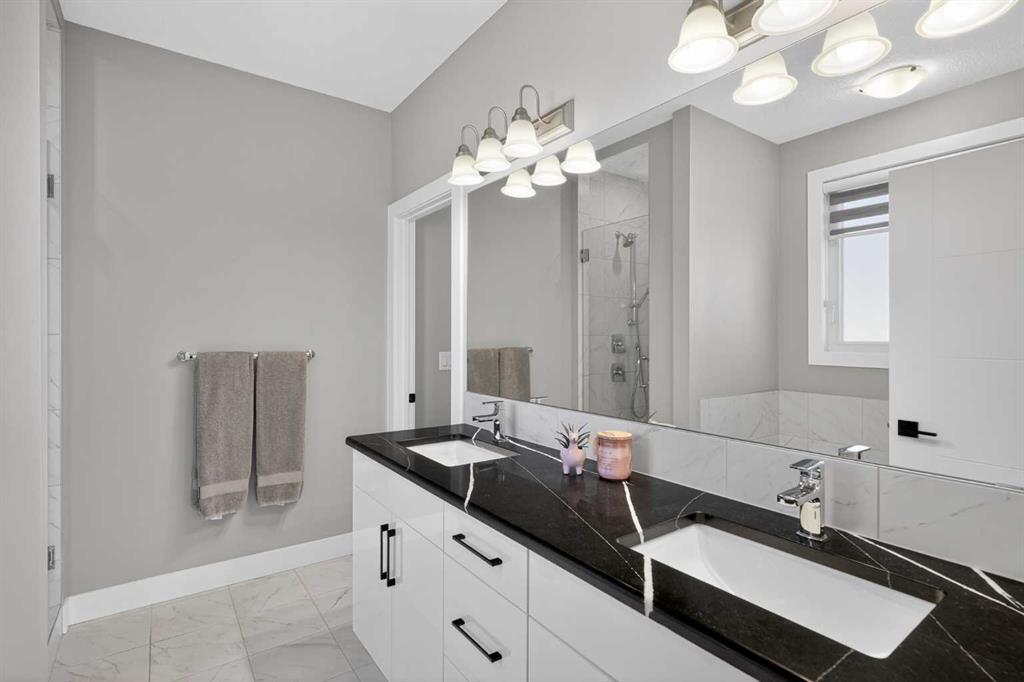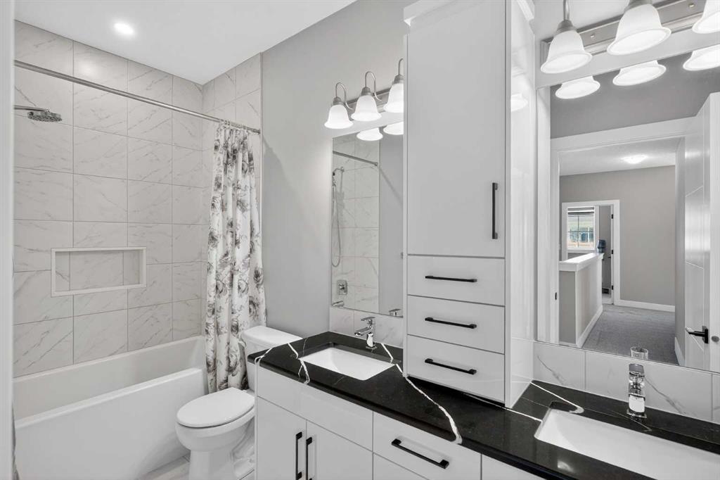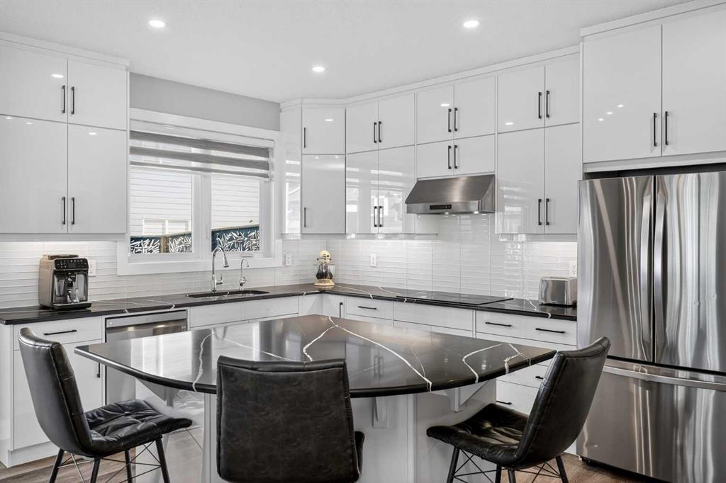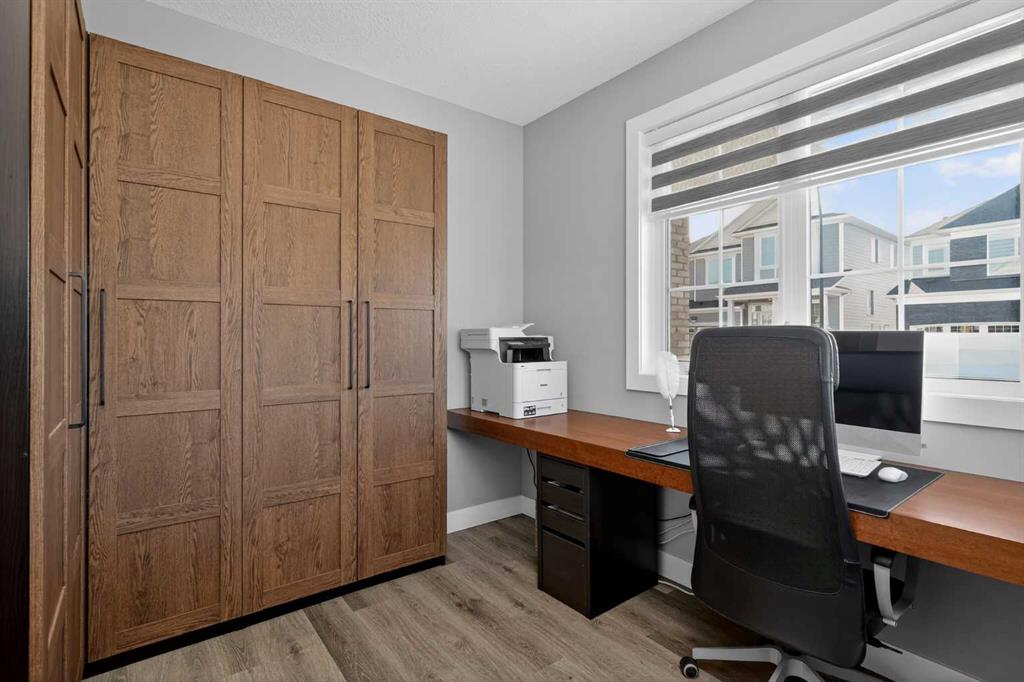 Set on a prominent corner lot in Yorkville, this fully finished 2,414 sq ft home makes a strong first impression with its upgraded Georgian Colonial exterior—an elegant blend of brick and Hardie board, complemented by a welcoming wraparound front porch that adds both charm and usable outdoor space. Inside, the layout is both functional and refined. The main level features 9’ ceilings and durable LVP flooring, with a spacious kitchen designed to anchor the home. Quartz countertops, full-height cabinetry, a built-in wall oven, and a distinctive curved island bring both style and practicality together. The living room is warm and inviting, centred around a 45″ fireplace with a full-height tile surround, while the dining area offers a natural space for everyday meals or hosting. There’s a main floor office with a built-in desk and cabinetry that stays, and a mudroom that goes beyond standard—with a built-in dog wash that doubles as the perfect spot for muddy boots or cleanup after a long day. Upstairs, enjoy the grand feeling of 9’ ceilings with four well-proportioned bedrooms, including a primary suite with a 5-piece ensuite and walk-in closet. There’s even a bright bonus room, adding flexibility for relaxing or gathering, and the laundry room is finished with custom-built-in cabinetry for added convenience. A second full 5-piece bathroom, with an additional central cabinet, completes the upper level. The builder professionally finished the basement, extending the living space with a large family room, a fifth bedroom, a 3-piece bathroom, and a substantial storage area. The pool table can be included, creating an easy transition into a fully usable lower level. Outside, the landscaping is complete and thoughtfully designed, featuring a large low-maintenance deck, stonework, and a fully fenced yard that’s ready to enjoy. The corner lot provides additional light and space, complemented by a double-attached garage, driveway, and ample street parking. The home is also equipped with a Kinetico water system, adding an extra layer of everyday comfort and quality. Yorkville is a growing southwest Calgary community known for its wide streets, planned green spaces, and pathway connections. With convenient access to Macleod Trail and Stoney Trail, along with nearby shopping, dining, and everyday amenities, it offers a balanced lifestyle with both accessibility and room to grow. A well-executed home with meaningful upgrades, a functional layout, and a finished outdoor space that’s ready from day one.