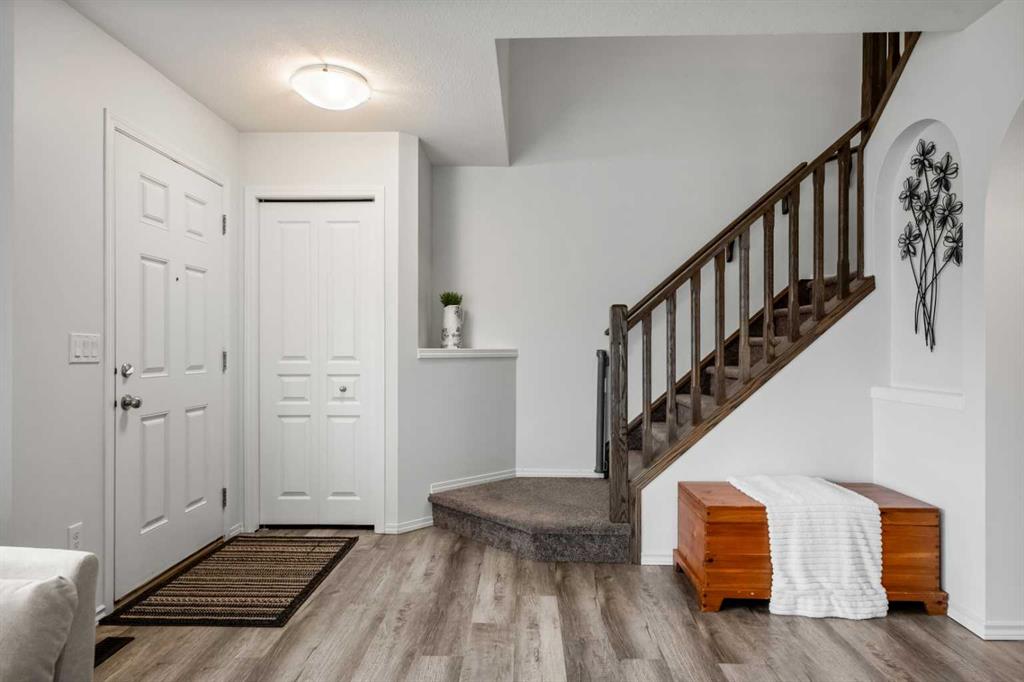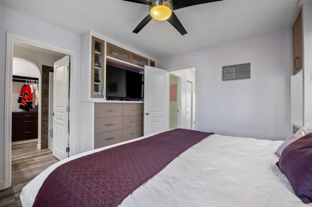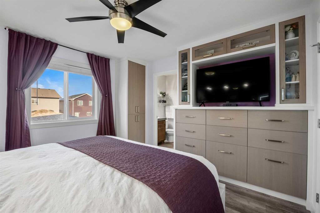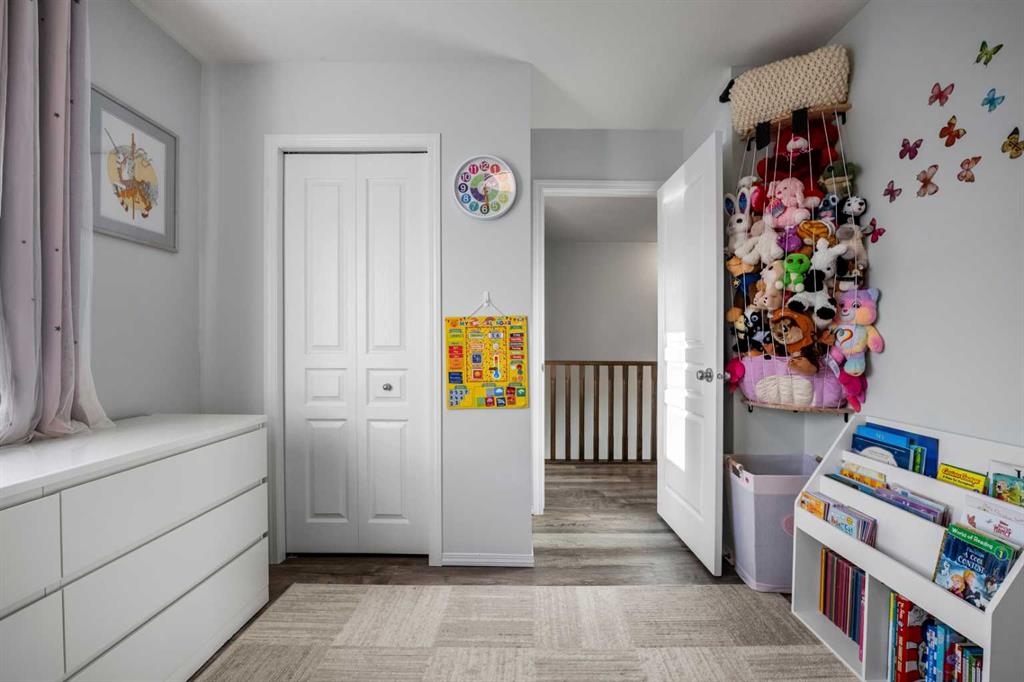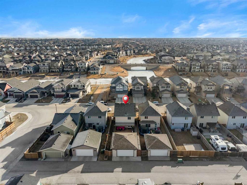Step into exceptional Bayside living in this truly one-of-a-kind home located across from the scenic canal where every detail has been thoughtfully planned for comfort, style and everyday enjoyment. From the moment you arrive, you’ll appreciate the inviting curb appeal, oversized heated double garage, perfect for year round convenience, extra storage, or a functional workshop space. Thoughtful upgrades include a tankless water heater, air conditioning, water softener, and newer washer & dryer, delivering modern efficiency and comfort. Inside, enjoy luxury vinyl plank flooring throughout (except the kitchen), no carpet anywhere! The open, light-filled main floor showcases a spacious living area with bay windows, half bathroom, a great kitchen with large pantry, custom dining nook with benches and beautiful custom built-ins throughout, creating both style and smart storage solutions. Upstairs features 3 spacious bedrooms, including a relaxing primary retreat complete with a 4-piece ensuite, walk-in closet with built-ins and a custom kangaroo bed, ET centre, dresser, side storage towers, armoire and make up vanity included. An additional 4-piece main bath serves the 2 secondary bedrooms, ideal for families or guests. The developed basement offers incredible versatility with sound-dampening insulation, making it perfect for movie nights, a games area, or a quiet workspace, and don’t miss the secret door feature that adds a fun and unique touch! Step outside to your massive cedar deck with pergola, an entertainer’s dream. With a natural gas BBQ hook-up, plenty of space to host, and an extra wide lot with garden beds for the green thumb in the family, this backyard was designed for unforgettable summer evenings. An additional concrete pathway along the south side of the home enhances functionality and access to your outdoor space. This is more than just a home; it’s a lifestyle opportunity in one of Airdrie’s most sought-after canal communities. With premium upgrades, unbeatable outdoor living, and an incredible location, buyers will not want to miss this one. Walkable to Nose Creek Elementary school (K-5), shopping, parks and so much more, this location has it all. Book your private viewing today, homes like this don’t last. VIRTUAL TOUR AVAILABLE!