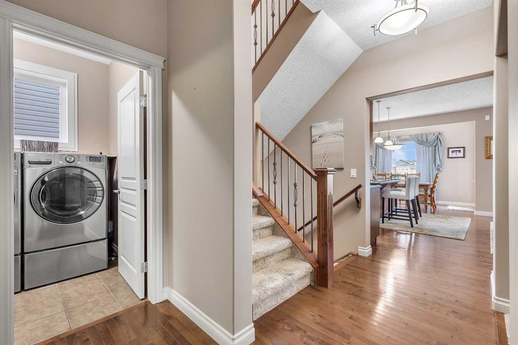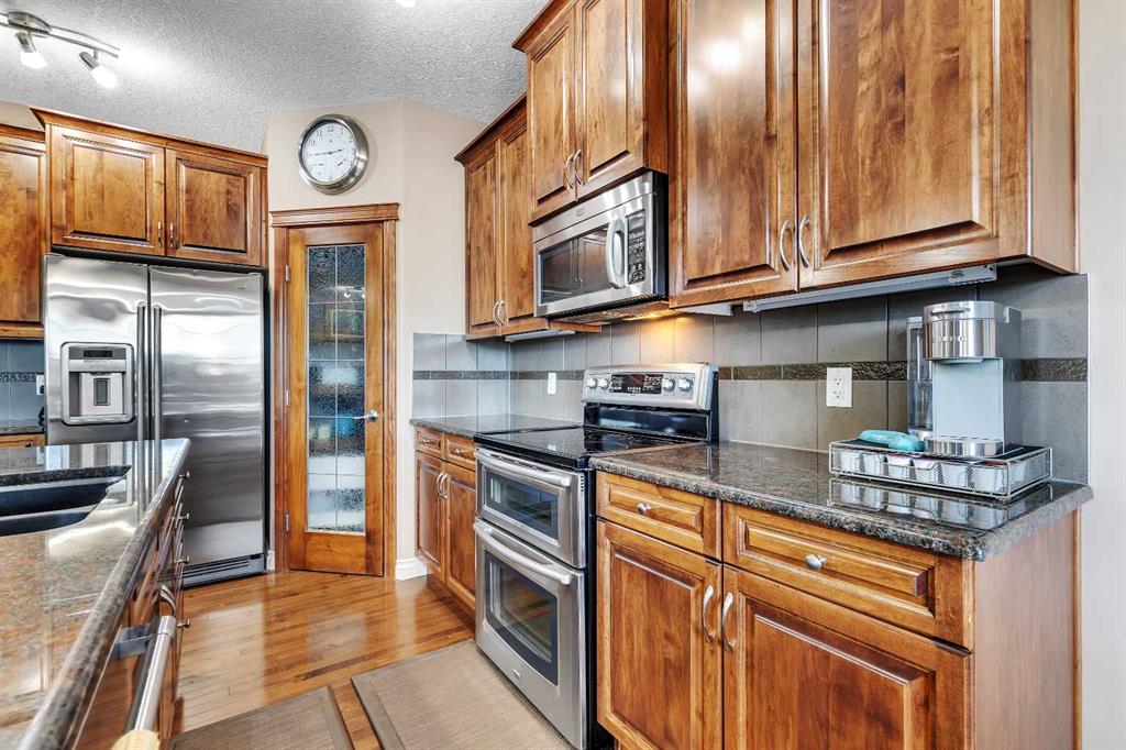 Location, Location, backing into the Canal & pathway. This original owner home offers numerous upgrades & features which include: 9′ ceilings, vaulted bonus room, over 3300 sq ft of developed living space, total of 5 bedrooms & 3.5 bathrooms, walkout lower level, upgraded stainless steel appliances, newer composite deck, hardwood, granite in kitchen, wrought iron railings, 2 furnaces, upper furnace has air conditioning, R.I .for speakers on main & upper ensuite, gas line on deck, lower patio area from walkout, manual underground sprinklers in front yard & so much more. The main floor features a 2pc bath, flex room, laundry area, spacious great room with gas fireplace & a large kitchen that offers a pantry, island with eating bar & a nook that has access to the over sized deck that over looks the canal. The upper floor features a 4pc bath, vaulted bonus room & 4 good size bedrooms. The primary bedroom offers a walk in closet & full ensuite. The lower walk out features a bedroom, den, 4pc bath & a family room that has access to the patio/yard. This home shows pride of ownership & is located on a quiet street close to schools, shopping, green spaces & all other amenities. Click on link to view 3D walk through.
