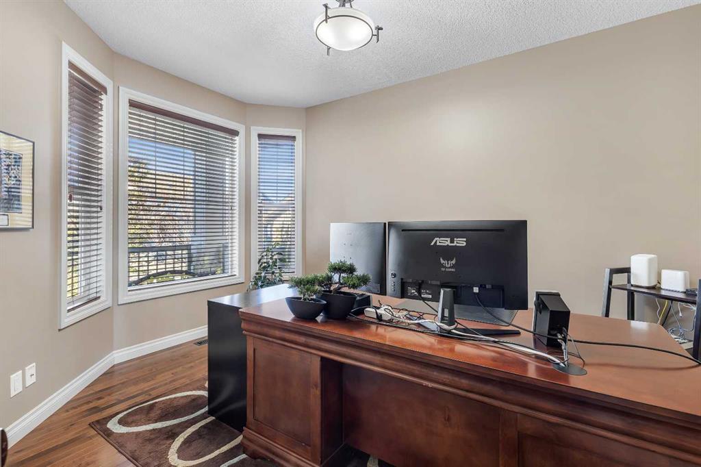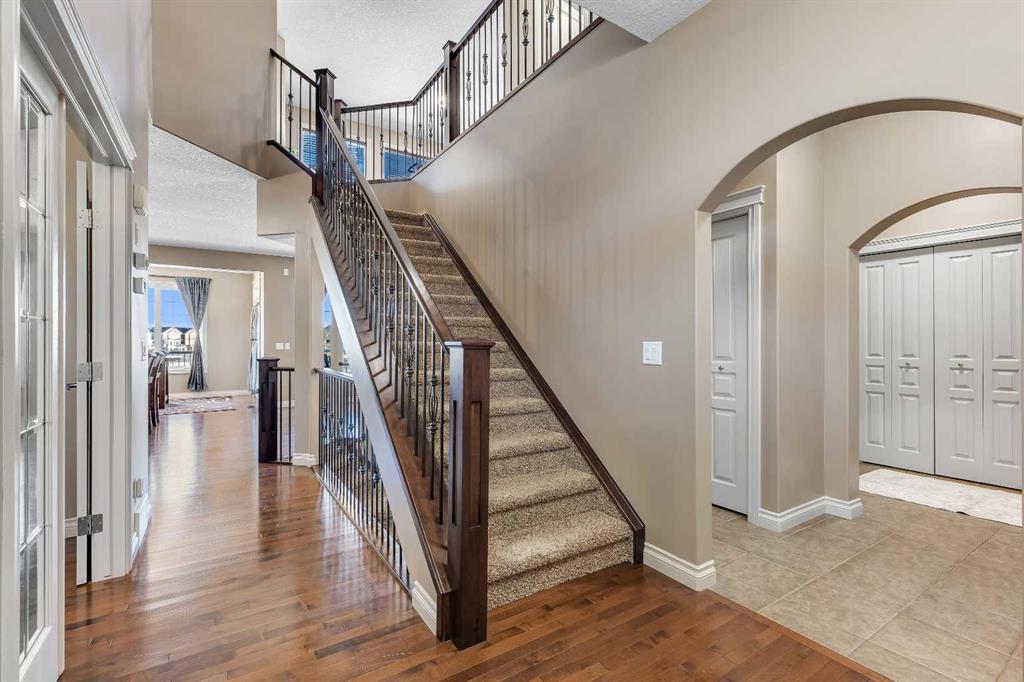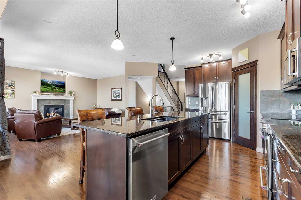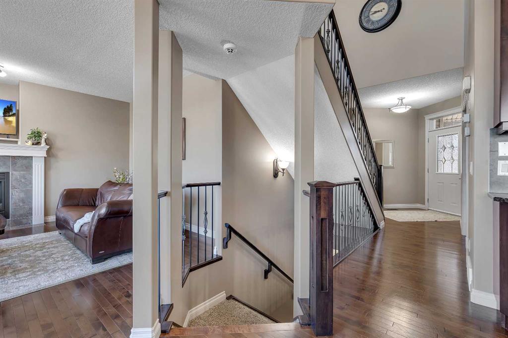 Location, Location, backing into the Canal & pathway. This original owner home offers numerous upgrades & features which include: 9′ ceilings, over 3600 sq ft of developed living space, total of 5 bedrooms & 3.5 bathrooms, walkout lower level, upgraded stainless steel appliances, newer composite deck, hardwood, granite in kitchen, wrought iron railings, 2 furnaces, upper furnace has air conditioning, R.I .for speakers on main & upper ensuite,, also 2 speakers on deck, all upper bedrooms have walk in closets, gas line on deck, lower patio area from walkout, hot water tap outside, manual underground sprinklers in front yard & so much more. The main floor features a 2pc bath, den, laundry area with sink, spacious great room with gas fireplace & a large kitchen that offers a pantry, island with eating bar & a nook that has access to the over sized deck that over looks the canal. The upper floor features a 4pc bath, bonus room & 3 good size bedrooms. The primary bedroom offers a walk in closet & full ensuite. The lower walk out features 2 bedrooms, 3pc bath & a family room that has access to the patio/yard. This home shows pride of ownership & is located on a quiet street close to schools, shopping, green spaces & all other amenities. Click on link to view 3D walk through.