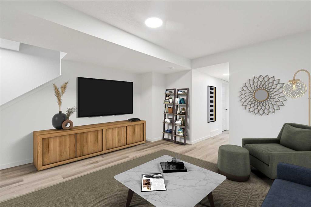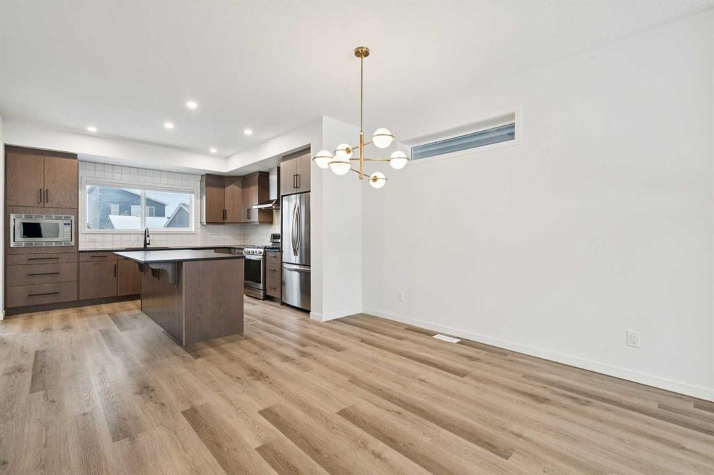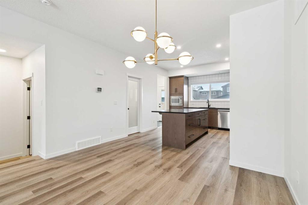 Boasting over 2130Sq Ft, with 3+1 bedrooms of fully developed living space, this gorgeous detached home offers stunning designer style comfortable modern living. Natural light floods the home with the ideal South facing exposure, where the foyer blends into the open living, dining and kitchen area. Tastefully finished subtle designer tones complement the earthy, timeless aesthetic of this home. The great room features luxury vinyl plank flooring throughout with a focal 50″ electric fireplace with sleek custom oak mantle giving the living room flexible layout options. The kitchen is a chef’s dream, featuring a spacious pantry, an amazing over sized island with upgraded quartz counters and loaded with custom designed drawers. Enjoy the gas range and counter depth refrigerator offering easy everyday function and convenience. Continuing on the main level, you’ll find a convenient powder room, perfect for guests and daily use and a spacious mud room with bench and hooks for easy daily function. Upstairs, the primary bedroom is flooded with natural light and offers a spacious walk-in closet and ensuite with oversized shower. The two extra bedrooms are perfect for family members or guests, and they share a beautifully appointed central 4pc family bathroom. Enjoy the convenience of an upstairs laundry room with a full length hanging rack and additional shelving. The basement is thoughtfully designed by the builder with a generous family room, perfect for entertainment and relaxation, a 4-piece bathroom for added convenience and a fourth bedroom. The lighting throughout this home has been thoughtfully upgraded to recessed LED’s which create an ambiance that is both warm and inviting. The exterior of this home is equally impressive, with a fully landscaped & fenced yard that adds to its curb appeal and creates a welcoming outdoor space for entertainment. A paved back alley-way provides access to space for secure parking or future dbl garage. This newer Morrison Home in Belmont offers a fresh and comfortable living experience, blending contemporary design, functional elegance, and a sense of community that makes it a true gem. Across from a possible future school area and easy access to excellent commuter routes and shopping amenities. Presented in pristine move-in ready condition and available for quick possession!