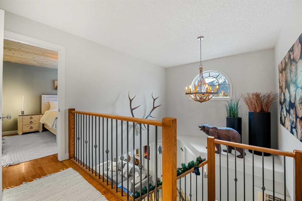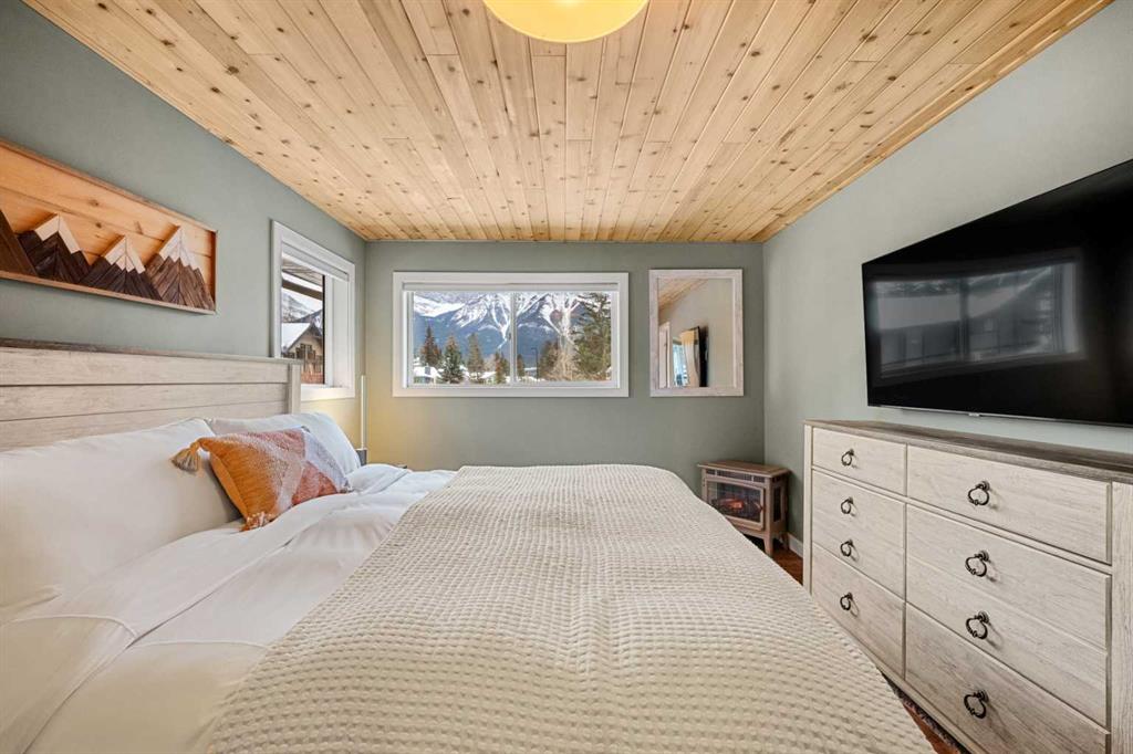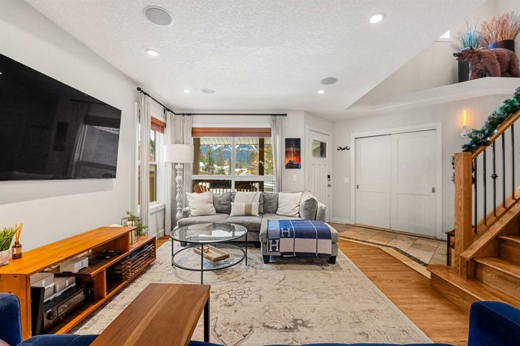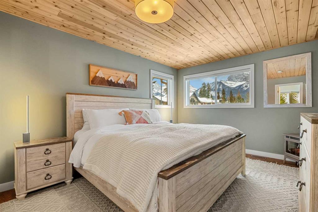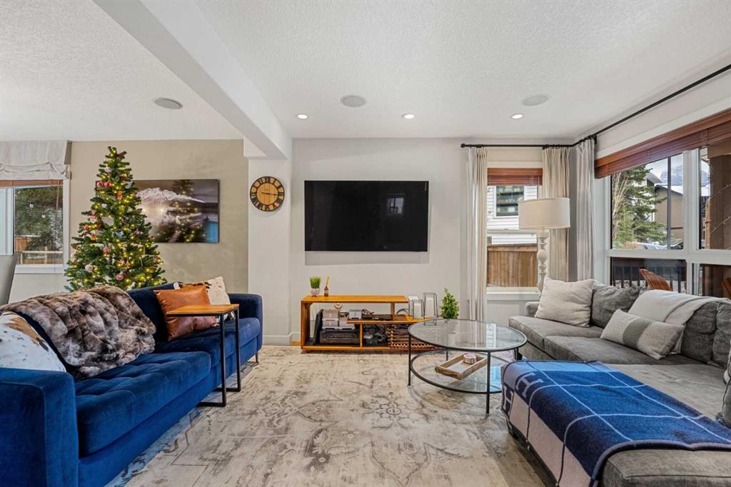 With 4 bedrooms, a fully finished basement, and major mechanical upgrades already done—including a newer roof, central A/C, and updated furnace and hot water tank—there’s truly nothing left to do but move in. A tiled entryway leads to a grand staircase and a warm, inviting living area. The jaw-dropping kitchen is the heart of the home, featuring stunning cabinetry, granite counters, a beverage centre, gas stove, and a massive dining nook wrapped in windows with patio-door access to your private backyard oasis. Upstairs, you’ll find three spacious bedrooms, including a perfect home-office option with corner windows framing Three Sisters and Lawrence Grassi mountain views. The primary suite impresses with a cedar-finished ceiling, generous closet, and a beautiful ensuite with dual sinks and a large walk-in shower.