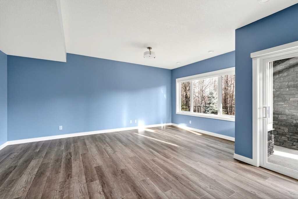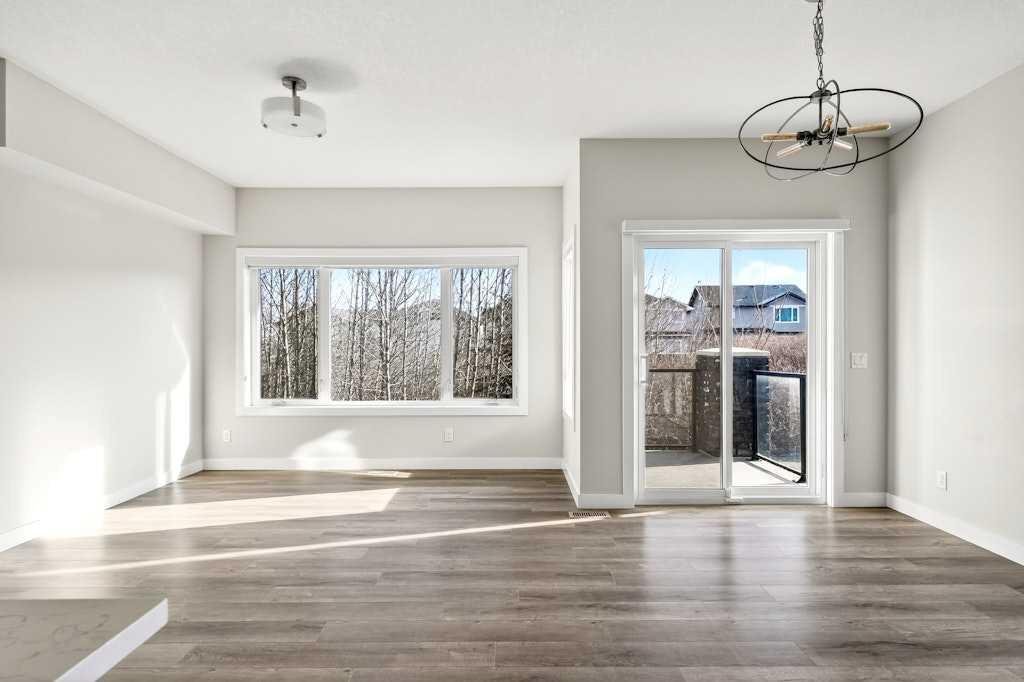 Exceptionally private and beautifully positioned, this ravine-backing home offers the kind of setting that feels rare, quiet, green, and uninterrupted, with peaceful views and no neighbours behind. From the moment you step inside, the home feels bright and elevated: soaring 9’ ceilings, expansive windows, and an open-concept main floor designed to take full advantage of the natural light and the landscape beyond. The living room is warm and welcoming, flowing seamlessly into the dining area, perfect for intimate dinners or effortless entertaining, while the kitchen anchors the space with a polished, modern finish: two-tone cabinetry, a crisp white backsplash, quartz countertops, and stainless-steel appliances that feel both current and timeless. Upstairs, the primary suite is a true retreat with vaulted ceilings, a walk-in closet, and a private ensuite featuring dual sinks and quartz finishes. Secondary bedrooms are generously sized and thoughtfully placed alongside a full bath, with upper laundry conveniently placed nearby for functionality. The fully developed walk-out basement expands your living space with an impressive recreation room and a 4-piece bathroom, ideal for movie nights, hosting, or creating the ultimate lounge, while sliding doors lead to a concrete patio where the ravine becomes your backdrop. Enjoy the added value of an extra-large attached garage with ample storage, ultra-efficient systems including an HRV for comfort and low utility bills, a high-capacity water softener, and A/C already in place. With two scenic ponds and pathways just steps away, a welcoming community atmosphere, daycare and local shops moments from your door, quick access to Highway 1 and the mountains, and Winsport nearby, this is refined, low maintenance living with a view that never gets old.