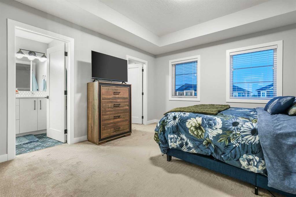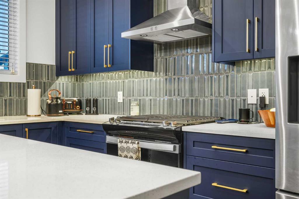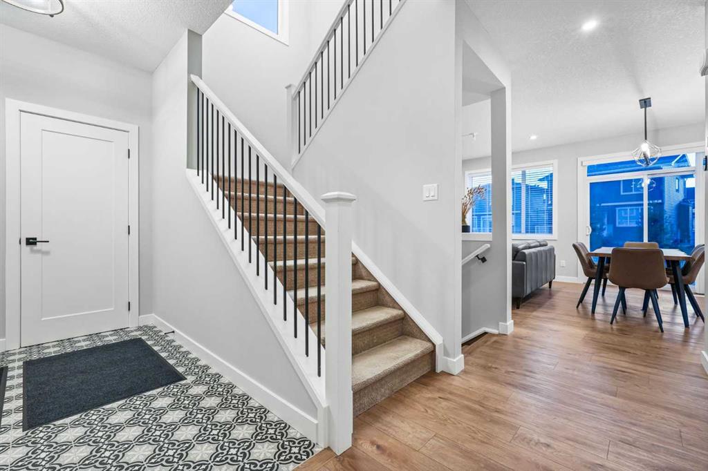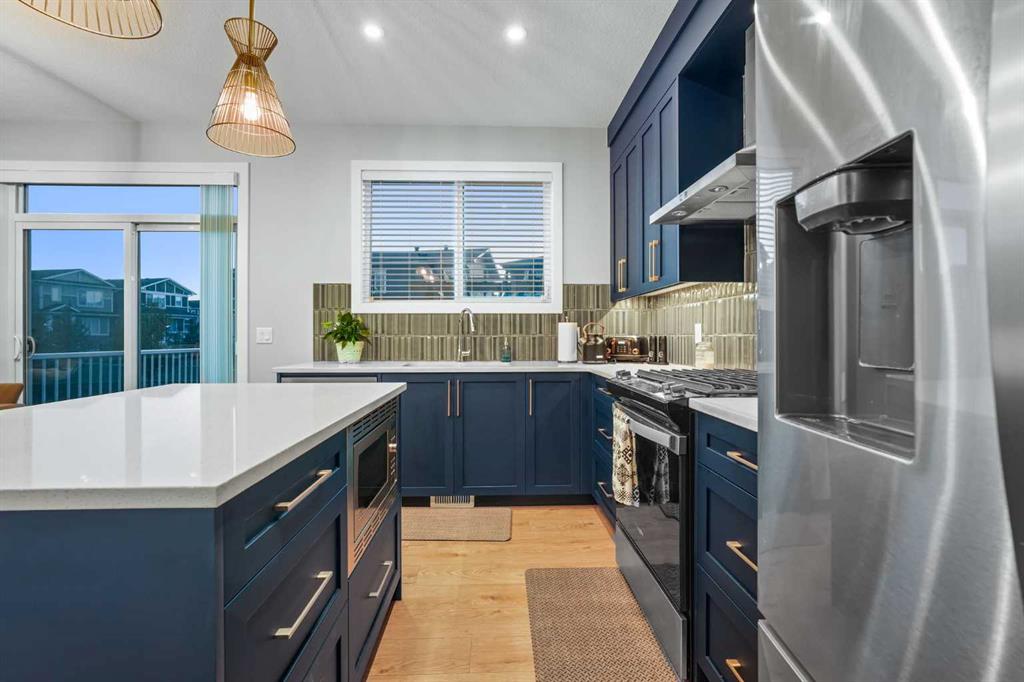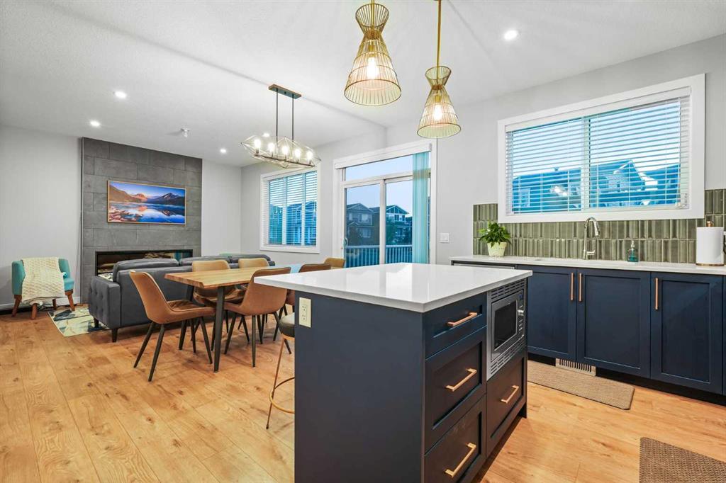 Welcome to your dream home in Dawson’s Landing! A stunning, like-new 2022 Truman-built “cottage” series, exclusive home that combines luxury design with everyday comfort. Meticulously maintained and filled with premium upgrades, this home truly stands out from the rest. The main floor features wide-plank flooring, 9’ ceilings, and a bright, open-concept layout perfect for entertaining. The designer kitchen impresses with navy cabinetry, quartz counters, brass hardware, a custom tile backsplash, and stainless steel appliances, including a gas range and built-in microwave. A walk-in pantry offers exceptional storage, while the electric fireplace and large windows create a warm and inviting living space. A stylish powder room and mudroom with access to the double attached, drywalled garage complete the main floor. Upstairs, the primary suite is a true retreat, complete with a feature wall, large windows, and a bonus flex room ideal for a nursery or home office. The spa-inspired ensuite features quartz counters, a large tiled shower with a bench, and an oversized walk-in closet. Two additional bedrooms, a full bathroom, and a convenient upper laundry complete the level. The fully developed basement offers a fourth bedroom, a full bathroom, and plenty of extra storage. Step outside to enjoy a beautifully finished backyard with a new patio, pergola, and raised flower boxes—a perfect space for summer gatherings. Located on a quiet street just 25 minutes to downtown Calgary and minutes to Stoney Trail, schools, shops, and Lakeside Golf Club, this home offers exceptional value in one of Chestermere’s most desirable
