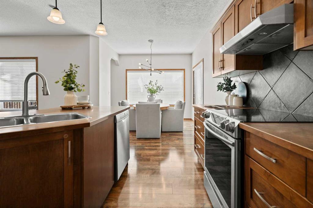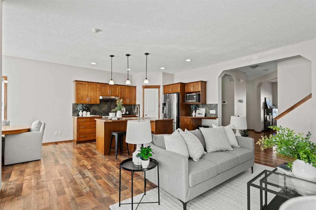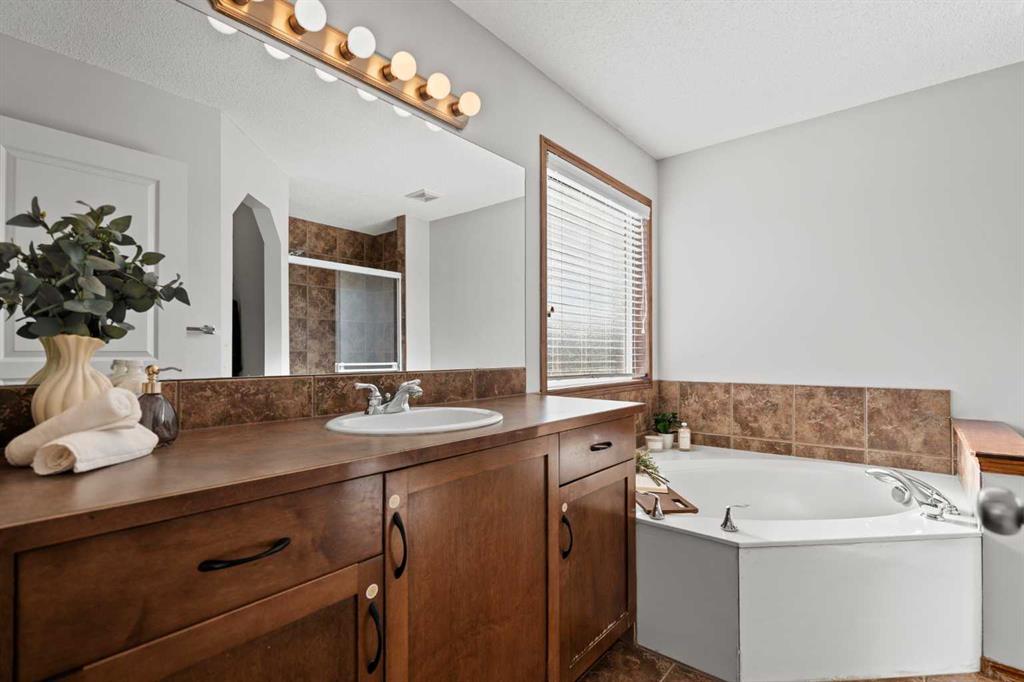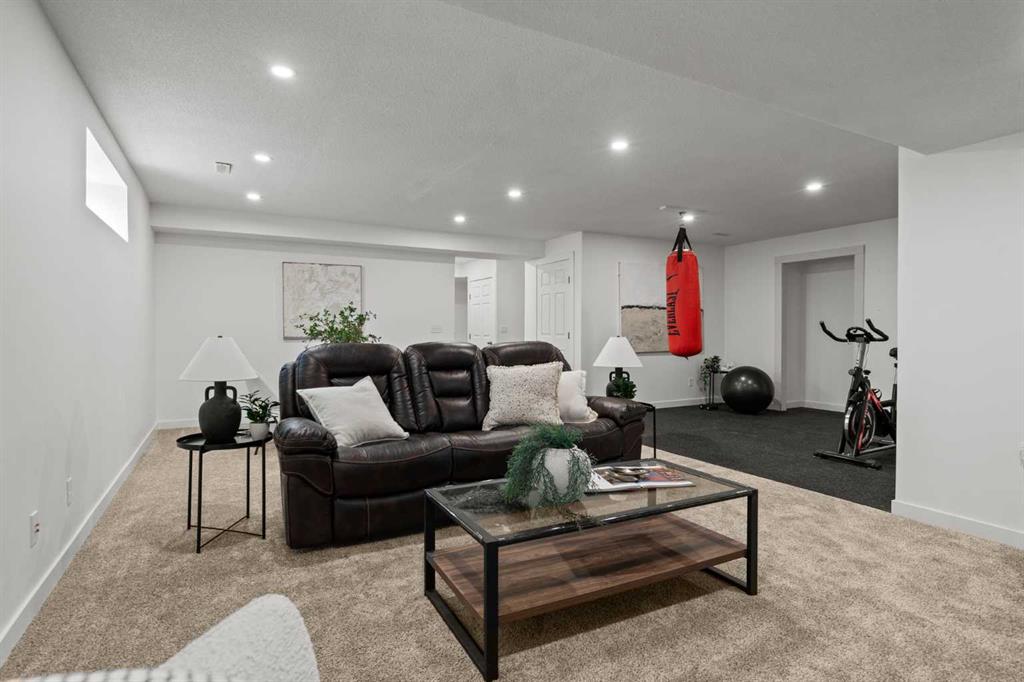 Welcome to this beautifully maintained 4-bedroom, 3.5-bathroom home located on a quiet street in McKenzie Towne. The main floor features hardwood flooring, a cozy wood burning fireplace, and a bright, functional layout that flows seamlessly through the living and dining spaces. Upstairs, you’ll find a spacious bonus room with a charming Juliette balcony, along with the primary suite that offers a relaxing retreat complete with a corner soaker tub, walk-in shower, and generous walk-in closet. The fully finished basement includes durable LVP flooring and soft to touch carpet with a raised subfloor system, in-floor heating in the guest ensuite bathroom, and a stand out media room, wired for surround sound plus a spacious gym area with rubber floor matting. Outside, enjoy a completely low-maintenance backyard with composite decking, a built-in hot tub, astro turf, and professional landscaping, all enclosed by a new fence. The 24×26 ft parking pad is ready for a future garage, offering added convenience and value. Major updates include furnace (2022), air conditioning (2022), and hot water tank in 2017, Fresh paint on the main and 2nd floor. This beautiful home is move-in ready and available for immediate possession—get settled before Christmas!