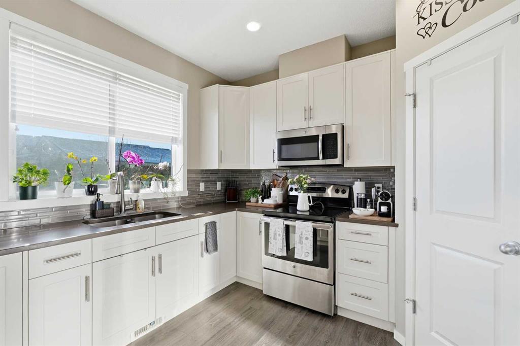 Original owner, centrally located in the 4-season community of Auburn Bay away from all the traffic noise but walking distance to schools, Auburn Station and transit just outside a playground zone! A quaint North facing front porch offers access into the main floor boasting 9′ ceilings with a tiled foyer and front lifestyle room. Laminate flooring stretches from the front to the back of this open plan with added transom windows over the center dining area. The rear of the home has a garden door to the South exposed backyard which comes fenced, landscaped and with your own double detached garage. The corner kitchen has classic white extended cabinets, a full set of stainless-steel appliances, quartz counters, soft close mechanics, a backyard window over the sink and a plethora of storage and prep space. Completing this level is a 2-peice bath and side stairs to the lower basement. The upper plan has room for all with 2 back kid’s bedrooms their own tiled 4-peice bath with a counter height storage vanity, tiled floors and tub surround with added tile accents. Enjoy the convenience of an actual upper laundry room with extra space to move. The primary bedroom is situated at the front of the home and comes complete with a walk-in closet and tiled 3-peice en-suite bath offering a full-size shower, cabinets and drawers in the counter height vanity. An un-touched basement has the perfect layout for any future development with space for a 4th bedroom, storage, a recreation room and a 3rd full bath. Â Presented in pristine condition, this is the plan, location, community for any growing families needs!