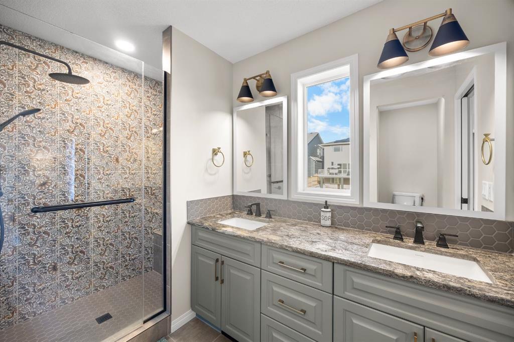 On the upper level, a central Bonus room provides the perfect space for family movie nights or a kids’ play station. The spacious Primary suite offers a peaceful retreat with a walk-in closet and 4-piece luxurious ensuite bath featuring double vanity, granite countertops, and an oversized tiled separate shower. Two additional well-sized bedrooms share a 4-piece bath, and a convenient Laundry room completes this level. The unfinished basement with bathroom rough-in awaits your imagination and development, offering excellent potential for future living space.