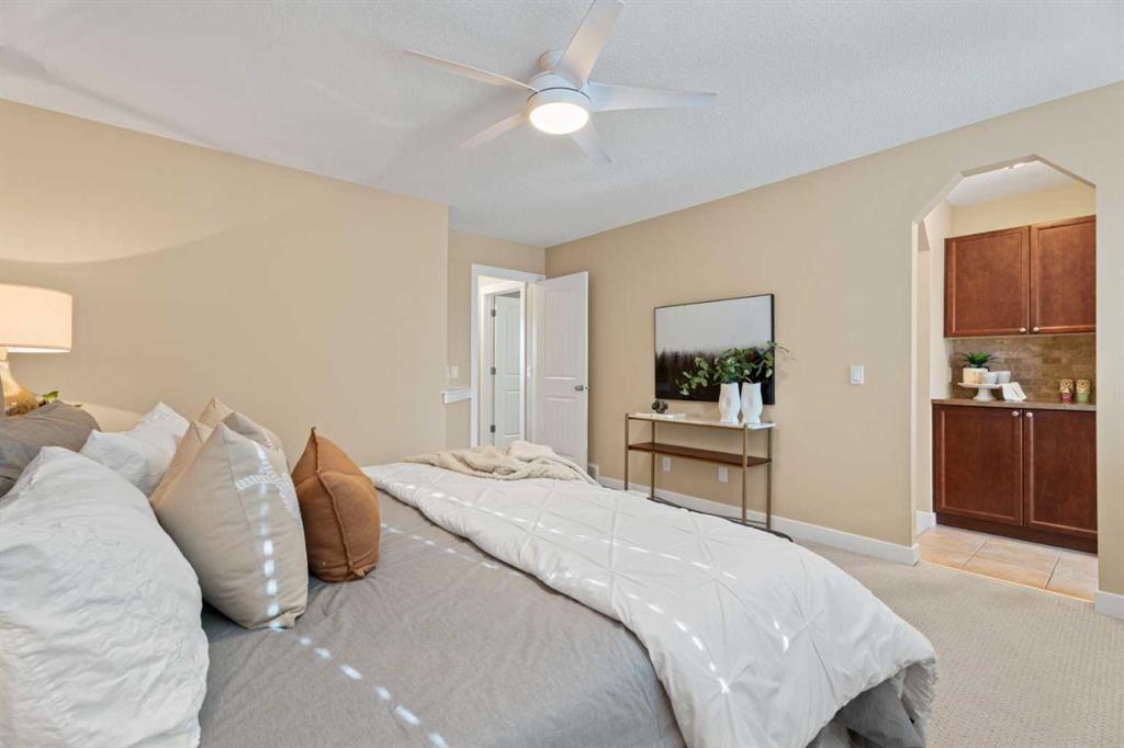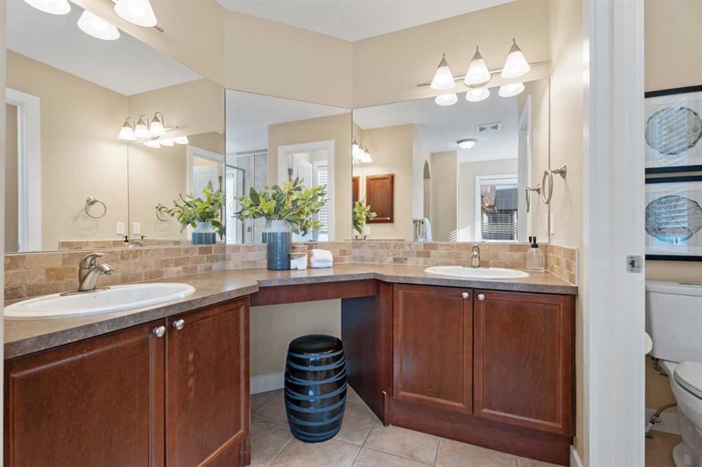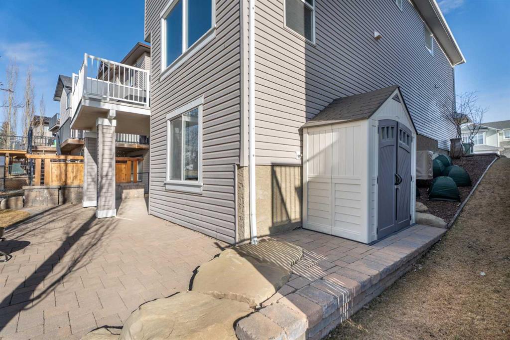 *Interior photos are coming soon, Open House Sunday March 22, 1-4pm* Welcome to 17 Drake Landing Crescent, a beautifully maintained 2,169 sq ft two-storey walkout in a family-friendly community with large lots. This 4-bed, 3.5-bath home with air conditioning offers a bright, functional layout and exceptional outdoor space. The open-concept main floor features a beautiful chef’s kitchen with granite countertops, maple cabinetry, stainless steel appliances, a gas stove, and a large corner pantry with ample storage. The kitchen flows into the dining nook and cozy living room, with the fireplace as the main focal point, all overlooking the pro-landscaped, west-facing backyard. Upstairs, you’ll find a spacious bonus room, central den area, large upper laundry, and three generous bedrooms. The large primary bedroom has a walk-in closet, a versatile coffee/juice bar with counter & cabinet, and a massive ensuite with a soaker tub, double sinks, and a stand-alone shower. The fully finished walkout basement provides a bright, private living space ideal for extended family or guests, complete with a kitchenette, fridge, carpet and heated tiles, 2nd large primary bedroom, and a full bathroom ensuite with a shower. Outside, enjoy a private, west-facing yard with mature trees, a gas fire pit with a granite surround included, and backing onto the main pathway system in Okotoks, walk or bike anywhere from here. Located close to parks, schools, off-leash areas, and more, this is a perfect family home in Drake Landing.