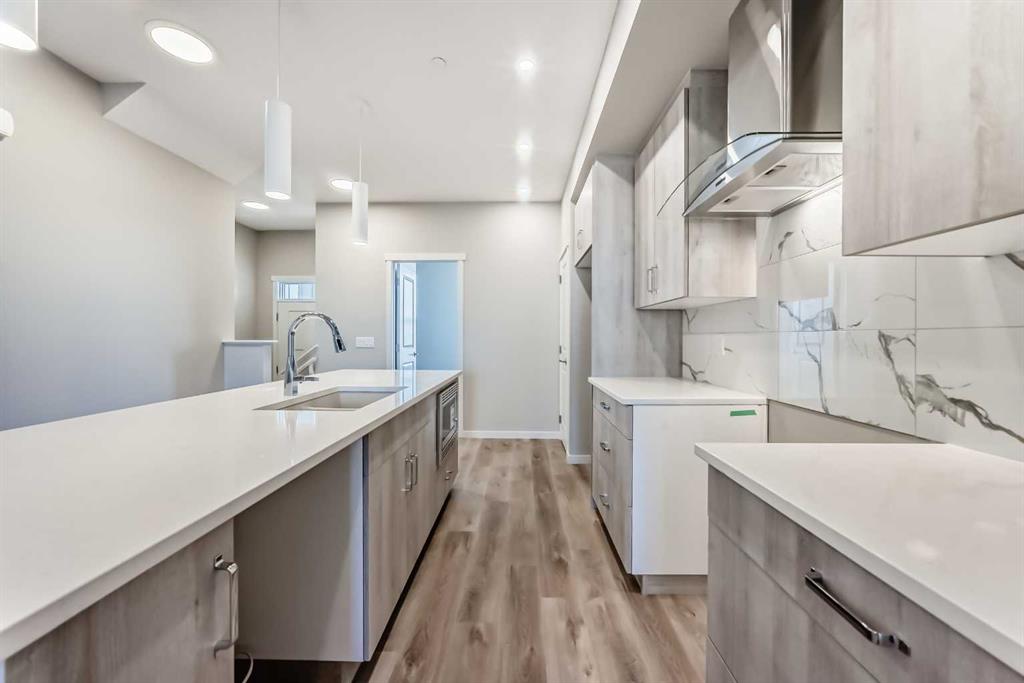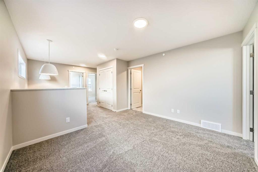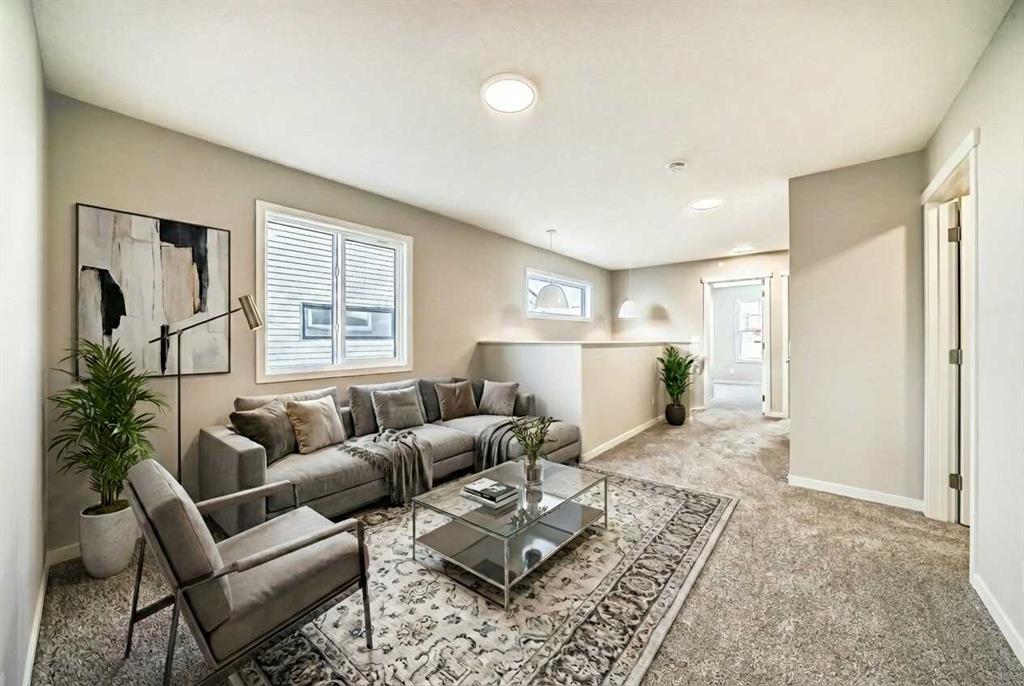 This brand-new “Rayn” is designed for real life—bright, modern, and thoughtfully laid out so it feels easy from the moment you walk in. Warm natural vinyl plank flooring, clean lines, and a fresh, timeless palette set the tone, while abundant windows keep the main level airy and sun-filled throughout the day. Thoughtful sightlines create an open feel without sacrificing defined, usable rooms. At the heart of the home, the central kitchen blends style and function with natural wood-tone cabinetry to the bulkhead, a sleek marble style backsplash, chimney hood fan, stainless steel appliances, and crisp white quartz coounters. The oversized island is made for morning coffee, quick meals, and casual entertaining, with space for seating so guests naturally gather where you want them. The dining area sits perfectly between the kitchen and living room with space for a full-sized table, ideal for holiday dinners, board-game nights, or weekend brunches. The rear living room is anchored by an oversized window, creating a comfortable space for movie nights and relaxing evenings. A smart rear entry keeps everyday life organized, and the convenient 2-piece bath is perfectly placed for guests and busy mornings. Two standout flex spaces elevate the layout: a versatile main-floor flex room just off the kitchen (home office, playroom, or gym) and a raised homework/tech nook overlooking the main floor—practical, clean, and great for keeping laptops, homework, and daily clutter off the kitchen island. Upstairs, a cozy bonus room offers a second lounge for kids, reading, or a media space. The primary retreat is tucked quietly at the back with an oversized window, a generous walk-in closet, and a stylish 4-piece ensuite featuring dual sinks and a full-size shower, finishes you’d expect in a much larger home. Two additional rooms are perfect for the growing family and the upper floor laundry ensures wash day is a breeze. Downstairs, the walkout basement adds major lifestyle value with direct backyard access and the potential for a bright future rec space. Step outside to enjoy the rear deck—perfect for BBQs and summer evenings. And later, you’ll appreciate a key planning advantage: the separate side entrance for future flexibility, ideal for a suite or private lower-level development (secondary suite subject to approval and permitting by the city/municipality). Set in southeast Calgary’s growing Hotchkiss community, you’ll enjoy quick access to Stoney Trail and 22X, plus nearby Mahogany, Seton, shopping, services, and the South Health Campus—along with pathways and natural spaces that make it easy to get outside and enjoy the neighbourhood.