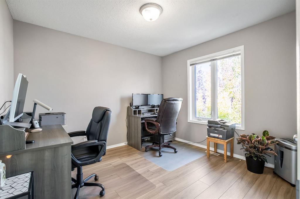 This move-in ready home is situated on a quiet street in the highly sought after family friendly neighborhood of Luxstone. As you approach you will notice the welcoming front porch and the pride of ownership including new siding, new shingles and almost all new windows (Completed in 2015). This well thought out layout offers gleaming vinyl plank flooring throughout and over 1850 developed sq ft. The front living room is a focal point and is flooded with natural light. A spacious “u shaped” kitchen is situated at the back of the home with timeless white cabinets that reach all the way to the ceiling, under cabinet lights, plenty of storage due to the corner pantry, a gas stove, and sink which looks onto the large dining room. Making it easy to entertain and connect. Off the bright dining room is direct access to your low maintenance outdoor oasis. Including a spacious deck, gorgeous stamped concrete patio, mature trees, garden boxes and an OVERSIZED 22×24 HEATED GARAGE! There is a convenient main level laundry room, and powder room tucked away for privacy. Upstairs you will find two well sized bedrooms each with walk in closets, and one with hard surface flooring. The oversized windows, in the primary draw in a ton of natural light, there is also plenty of storage with his and her closets. The oversized main bath has a separate shower, expansive vanity and relaxing soaker tub. The lower level is fully finished with a rec/game area, built in cabinets, and an additional living room. This updated home also offers fresh paint, all new flooring including stain resistant polyester carpet (2020), a newer high efficiency furnace (2020), hot water on demand (2023), as well as the comforts of air conditioning(2020). Perfectly situated close to schools, shopping, restaurants, and just a quick 5-minute drive to Deerfoot for an effortless commute. This home offers tremendous value, schedule your private showing or view the virtual tour today.