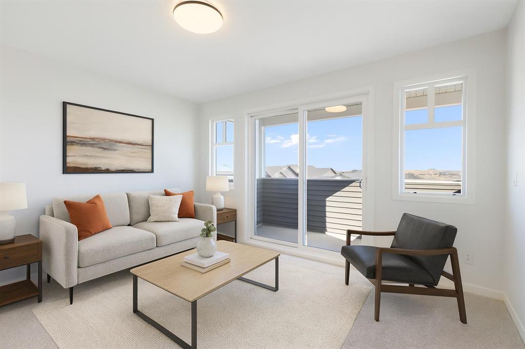 Welcome to 17 Marmot Passage NW, where modern design meets family functionality in the heart of Glacier Ridge – one of northwest Calgary’s most sought-after new communities. Built by Cedarglen Homes, this is the showstopping three-storey Carbon model offering 2,525 sq ft of beautifully designed living space, complete with 4 bedrooms, 3.5 bathrooms, a third-floor loft, and a covered balcony – perfect for families who want it all. From the moment you walk through the front door, you’ll notice how every detail feels elevated. The main floor welcomes you with 8’ doors, upgraded black hardware, and luxury vinyl plank flooring that flows seamlessly throughout the open layout. The great room is bright and airy with large windows and a sleek electric fireplace, while the chef-inspired kitchen is the true heart of the home featuring two-tone cabinetry, quartz countertops, a full working kitchen, and gas lines to both the range and BBQ. Whether you’re hosting a dinner party or a quiet night in, the dining nook and rear deck create an effortless indoor-outdoor flow. Upstairs, the primary retreat offers a peaceful escape with a large walk-in closet and a spa-like ensuite finished with tiled walls and an upgraded shower glass door. Two additional bedrooms, a full bathroom, upper-floor laundry, and a spacious bonus room ensure everyone has space to relax, work, or play. And just when you think you’ve seen it all – head up to the third-floor loft. This flexible space with its own covered balcony is where you’ll unwind after a long day, enjoy morning coffee in the sunshine, or set up your dream home office or media room. A 4th bedroom resides on this level, along with another 4 pc bathroom. It’s the perfect blend of comfort, creativity, and style. The side entrance and unfinished basement also make this home future-ready, with rough-ins for a secondary suite (subject to permitting and approval by the city) – offering both flexibility and long-term value. Outside your doorstep, Glacier Ridge invites you to live a lifestyle that balances nature, convenience, & community. Walk or bike through the beautifully designed pathways and green spaces, spend weekends exploring nearby parks and playgrounds, or take a quick drive to Creekside Shopping Centre, Beacon Hill, or Evanston Towne Centre for all your favourite shops, cafés, and everyday essentials. With schools, recreation areas, and future amenities continuing to grow, this is a community where families truly thrive. Available for immediate possession, this exceptional home blends luxury, practicality, & connection in one of Calgary’s most exciting northwest neighbourhoods. Come experience the thoughtful design and lasting quality of Cedarglen Homes and make Glacier Ridge your next chapter.