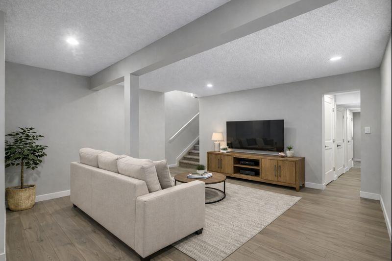 With over 1,900 sq ft of finished living space, this 3+1 bedroom + 3.5 baths has so much to offer in making daily life smooth for busy families. The main floor is made for gathering, with open living and dining areas, a refreshed kitchen that keeps everyone connected, and a cozy den with fireplace—perfect for reading, relaxing, or winding down at night. Renovations include new windows, flooring, fresh paint, an updated kitchen, new bathrooms, and a fully finished basement, creating a modern, move-in-ready space filled with light.