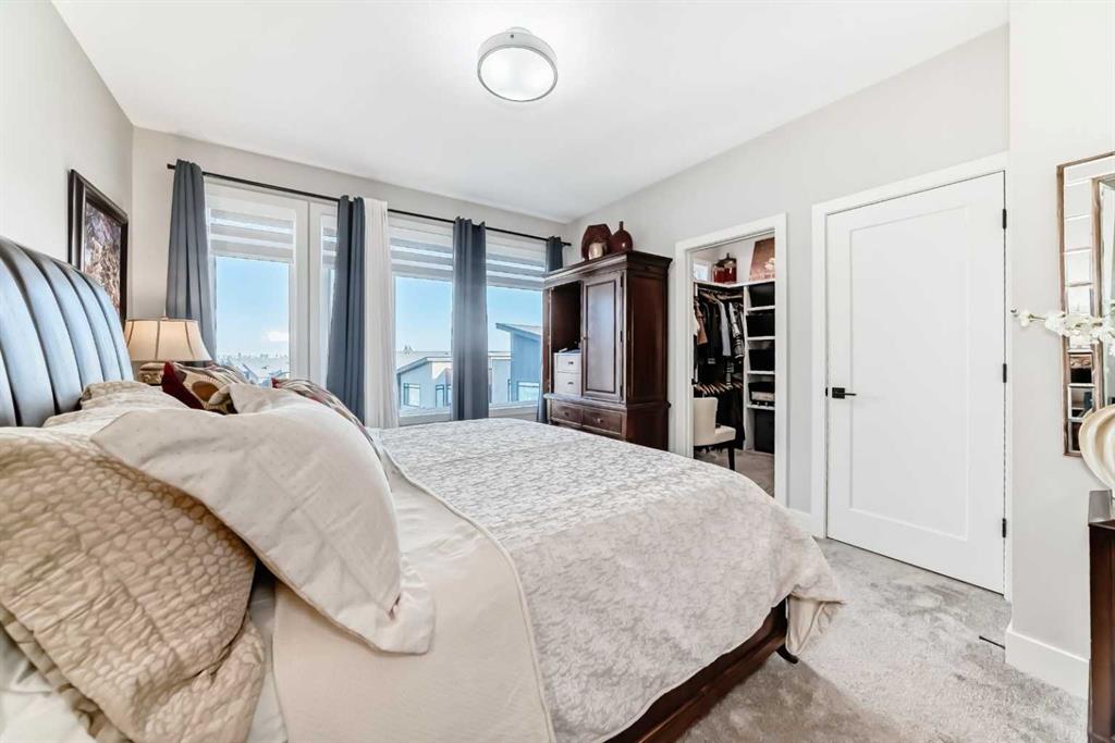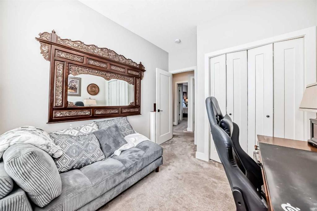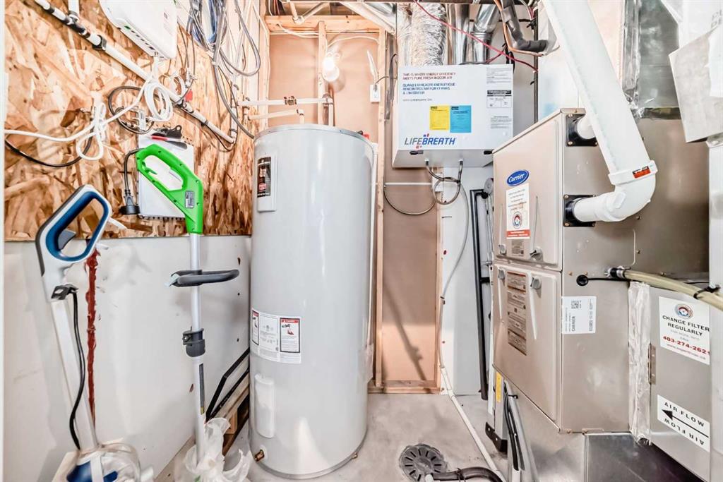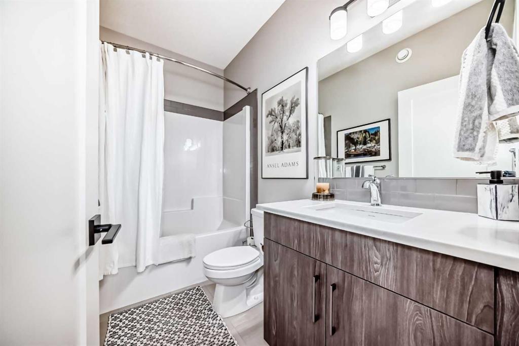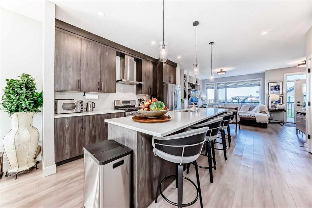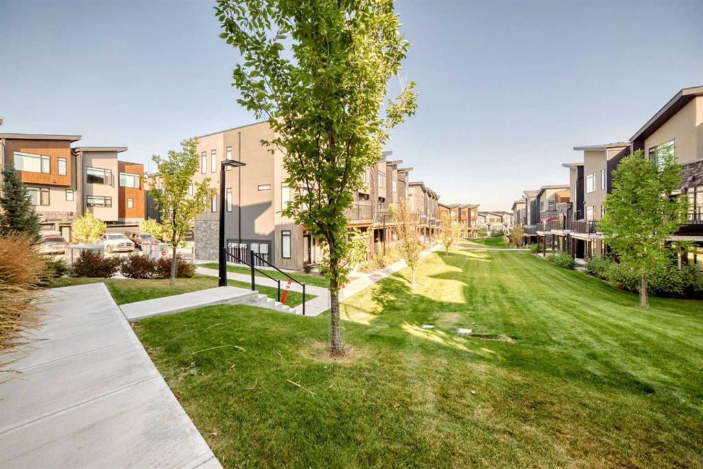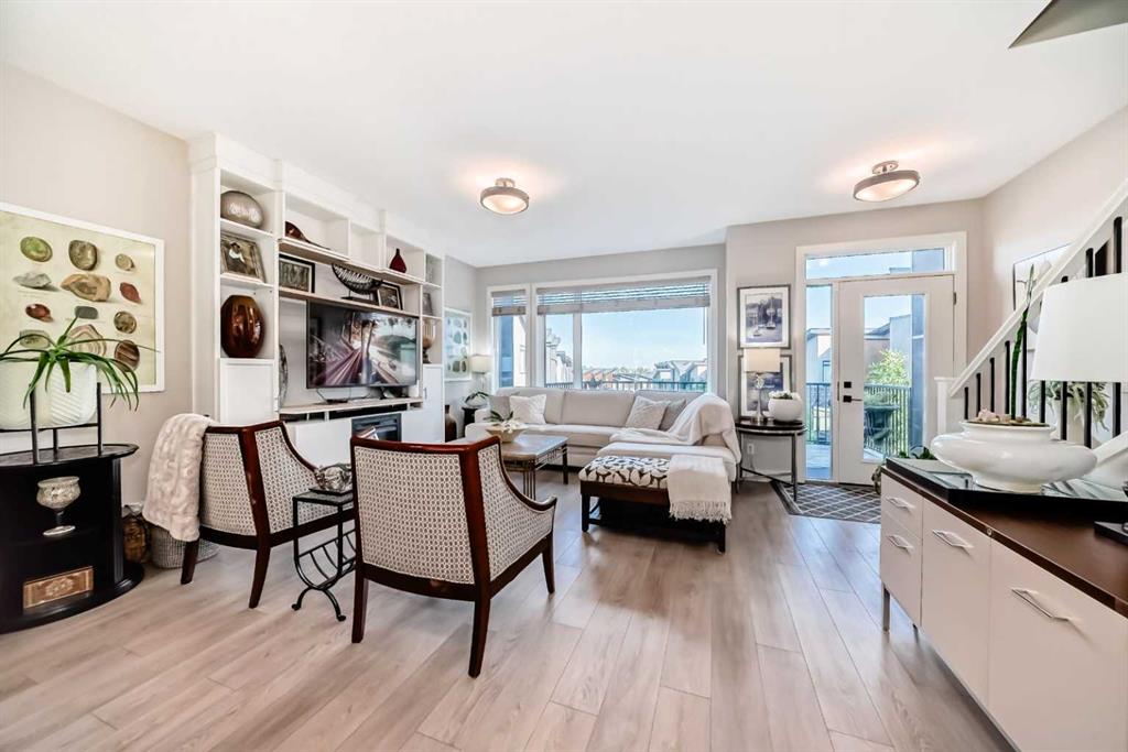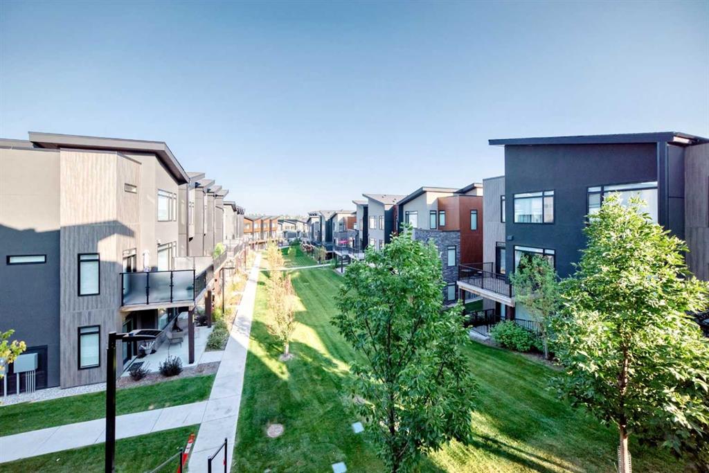 Click brochure link for more details. Discover this beautifully designed 3-storey townhouse offering 3 bedrooms, 2.5 bathrooms, and 1,846 sq ft of stylish living space. Located steps from a serene park and pond with walking trails, this home blends comfort, functionality, and a touch of nature. The lower level features a versatile office space, additional living area, and impressive wall-to-wall bookshelves, plus direct access to the double attached garage. Enjoy the convenience of in-unit laundry and central A/C throughout. The main floor welcomes you with a bright light flooding in from the oversized windows and an airy open-concept layout, perfect for both everyday living and entertaining. The Kitchen offers modern features including quartz countertops and an oversized fridge. The spacious living room features a stylish built-in fireplace framed by custom shelving and a sleek TV nook, creating a cozy yet modern focal point. The balcony off the main level is perfect for morning coffee or evening unwinding. Upstairs, the primary bedroom boasts a 3-piece ensuite and expansive windows, while two additional bedrooms share a 4-piece bath. This home is ideal for those seeking space, style, and a location that offers both urban convenience and outdoor tranquility.
