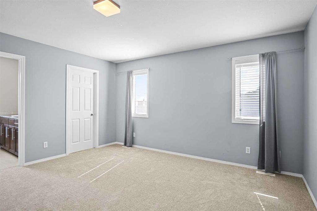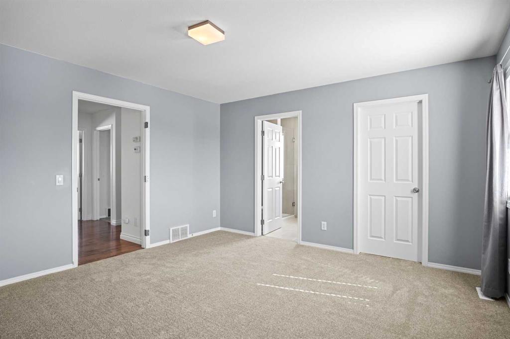 Upstairs, an impressive stairwell leads to the primary retreat, complete with a walk-in closet and a private ensuite featuring in-floor heating. Two additional bedrooms, a full bathroom, and a laundry area complete the upper level. Recent updates include fresh paint on the main floor and brand new carpet upstairs.