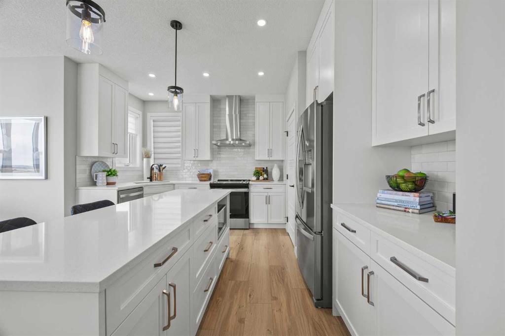 Welcome to The Berkeley – a stunning new home by Alliston Group in the highly sought-after new community of Tillotson. Thoughtfully designed with modern living in mind, this exceptional residence blends sophisticated style, spacious living areas, and premium finishes to create the perfect setting for family life and entertaining. At nearly 2,200 ft2 of developed living space + a full basement and a triple attached garage, this home is perfect for a growing family. Step inside to discover an open-concept main floor bathed in natural light, anchored by a beautifully appointed kitchen featuring an oversized quartz island and expansive walkthrough pantry that leads directly to the mudroom for everyday convenience. The seamless flow between the kitchen, dining, and living areas creates an ideal space for entertaining or relaxed family time. The dining nook is surrounded by windows and provides direct access to the west-facing backyard that overlooks green space. Retreat to the upper level where comfort and convenience converge. The large bonus room is located at the front of the home and offers downtown views from the upper level. The primary suite and its attached ensuite span the entire width of the home, all while overlooking the spacious backyard. The 12’x15’6″ primary bedroom leads to the spacious 5pc ensuite with dual sinks, a private water closet, soaker tub and walk-in shower as well as an expansive walk-in closet. Two more bedrooms, a full bathroom, linen closet and laundry room complete the upper level. Built with quality craftsmanship and an eye for detail, The Berkeley showcases tasteful fixtures and finishes that elevate every space. From the welcoming entrance with open-to-below design to the inviting living areas, this home balances refined design with practical functionality. Located in Tillotson, residents enjoy proximity to parks, pathways, schools, and local amenities – all within a vibrant community setting that’s ideal for growing families and active lifestyles. Experience comfort, style, and everyday convenience in The Berkeley – where your next chapter begins. **Please note: Photos are from a previous show home model and are not an exact representation of the property for sale.